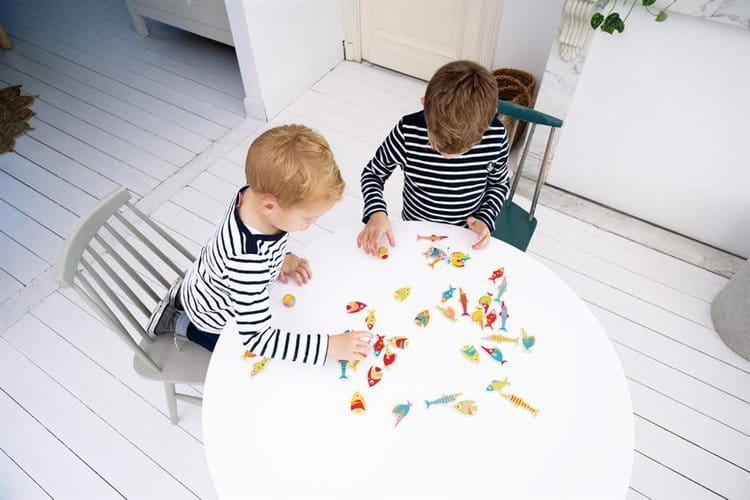 Gra polega na jak najszybszym znalezieniu rybki w kolorach, które wypadły na kostkach. W zależności od wieku uczestników można używać jednej, dwóch lub nawet trzech kostek. Osoba, która jako pierwsza odszuka pasującą rybkę kładzie ją koło siebie - właśnie ją złowiła. Gra uczy rozpoznawania kolorów, ćwiczy spostrzegawczość, na pewno będzie wesoło, komu uda się złowić więcej kolorowych rybek zwycięży!