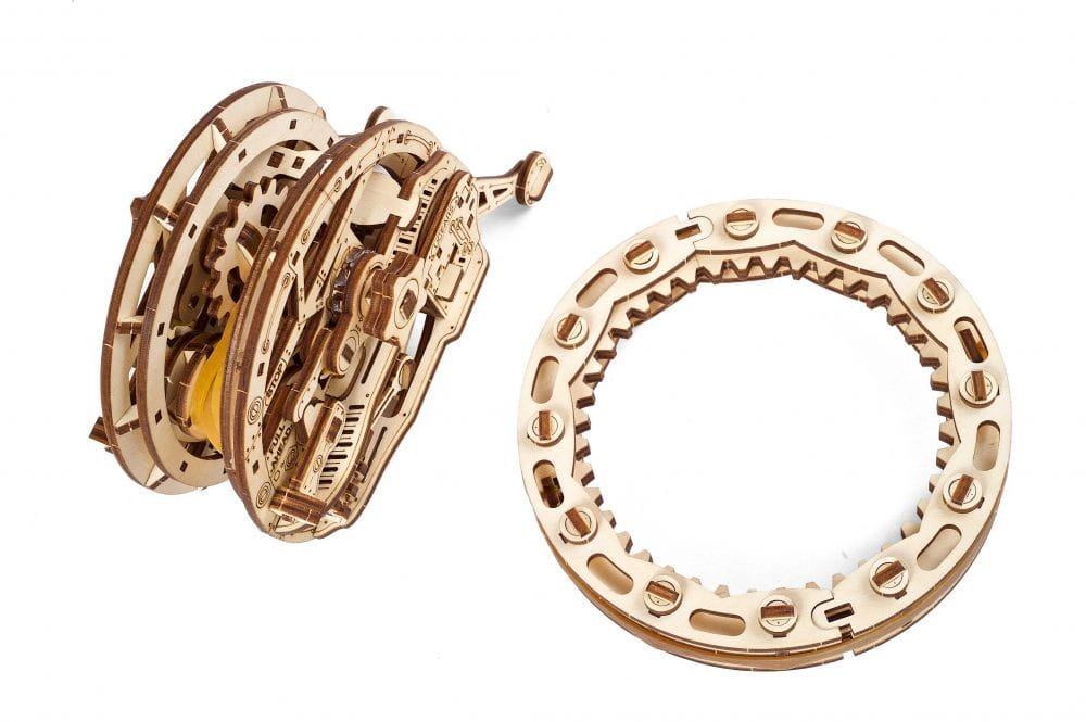 Drewniane puzzle 3D marki Ugears wiernie naśladują rzeczywiste mechanizmy. Poszczególne elementy są wykonane ze sklejki i wystarczy je wycisnąć i delikatnie przetrzeć papierem ściernym, aby otrzymać idealnie dopasowane do reszty detale. Dbałość o szczegóły na etapie produkcji, zapewnia prawdziwą przyjemność podczas składania oraz satysfakcję z wyglądu i funkcjonalności gotowego mechanizmu.