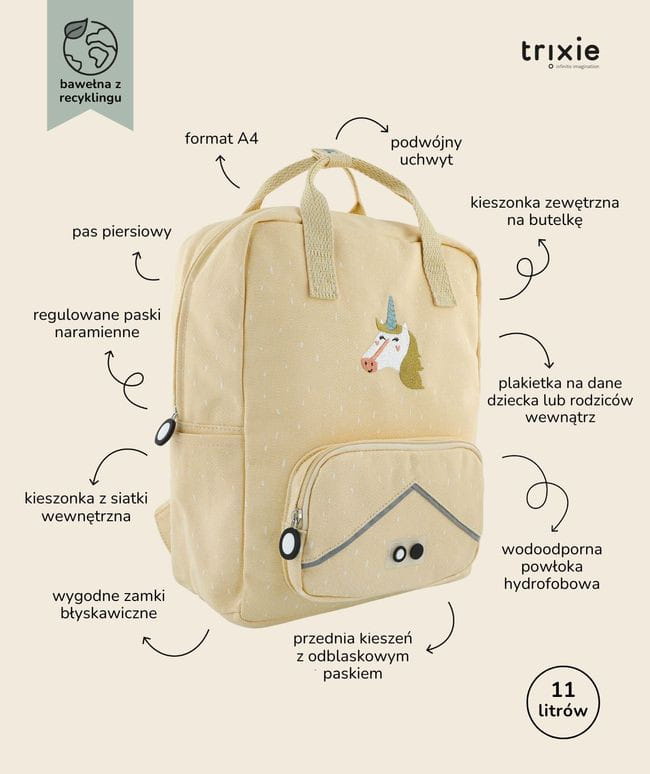Lekki i pojemny plecak duży z wesołym zwierzakiem, zaprojektowany z myślą o komforcie i funkcjonalności dzieci w wieku szkolnym. Jest wystarczająco duży, aby pomieścić książki i zeszyty w formacie A4. Wyróżnia się niepowtarzalnym wzornictwem i unikalną kolorystyką. Dzięki niemu dziecko jest gotowe na każdą szkolną przygodę.