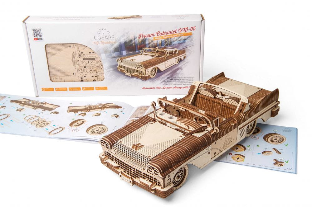 Kabriolet marzeń od Ugears - poczuj wiatr we włosach w aucie, którego historia sięga lat 50. ubiegłego wieku. Wykonane z dbałością o szczegóły drewniane puzzle mechaniczne 3D, 739 elementów - poziom trudności: ciężko.