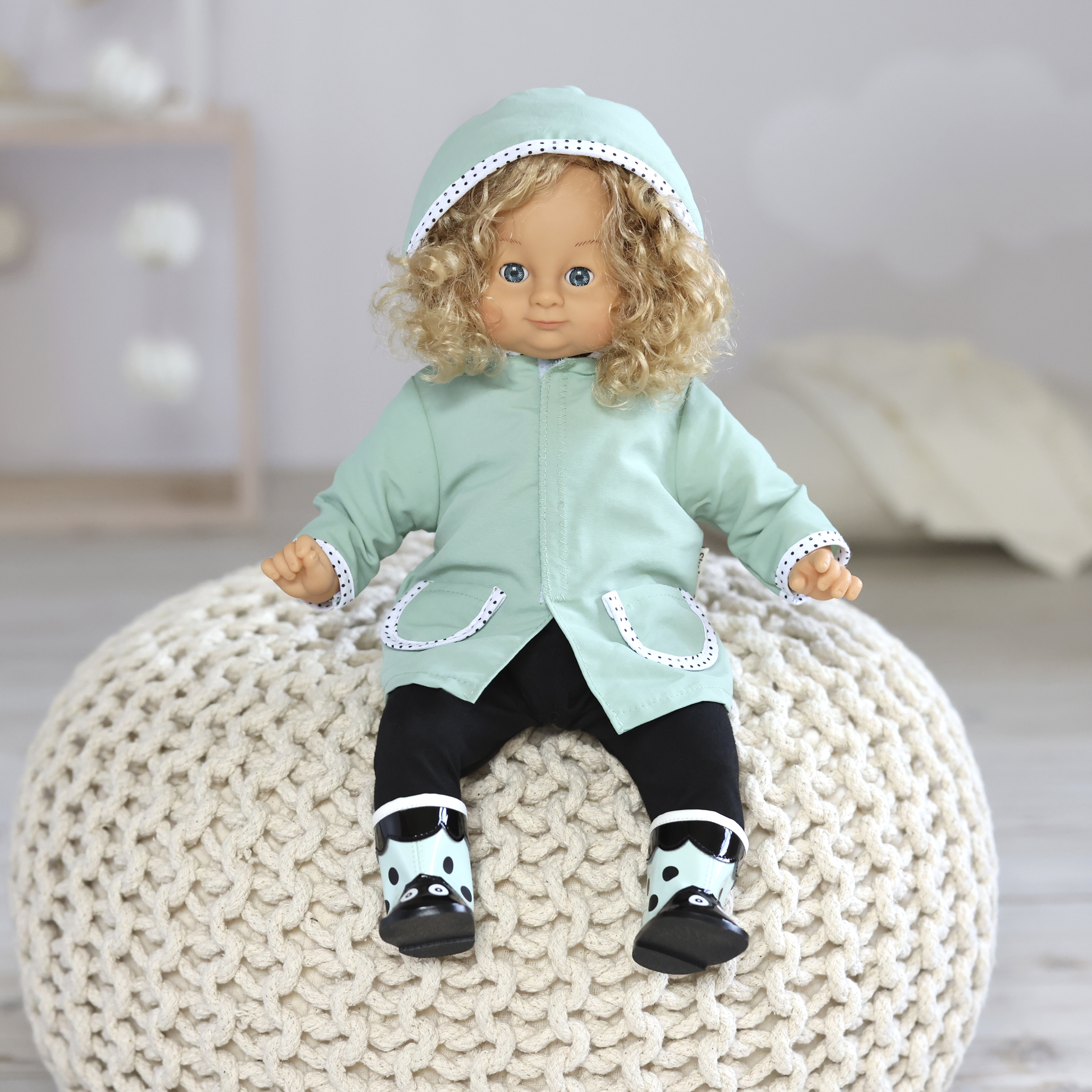 Twoja lalka jest gotowa na bieganie po kałużach! Cudne miętowe kalosze przypominające biedronki są wodoodporne i bardzo stylowe. Łatwo się je zakłada i zdejmuje z nóżki lalki, więc w mgnieniu oka Twoja przyjaciółka będzie gotowa by towarzyszyć Ci w zabawie na zewnątrz o każdej porze roku. Od teraz spacer podczas deszczowej pogody jest kolejną okazją do znakomitej zabawy!
