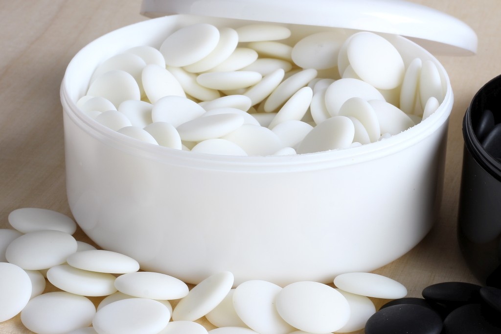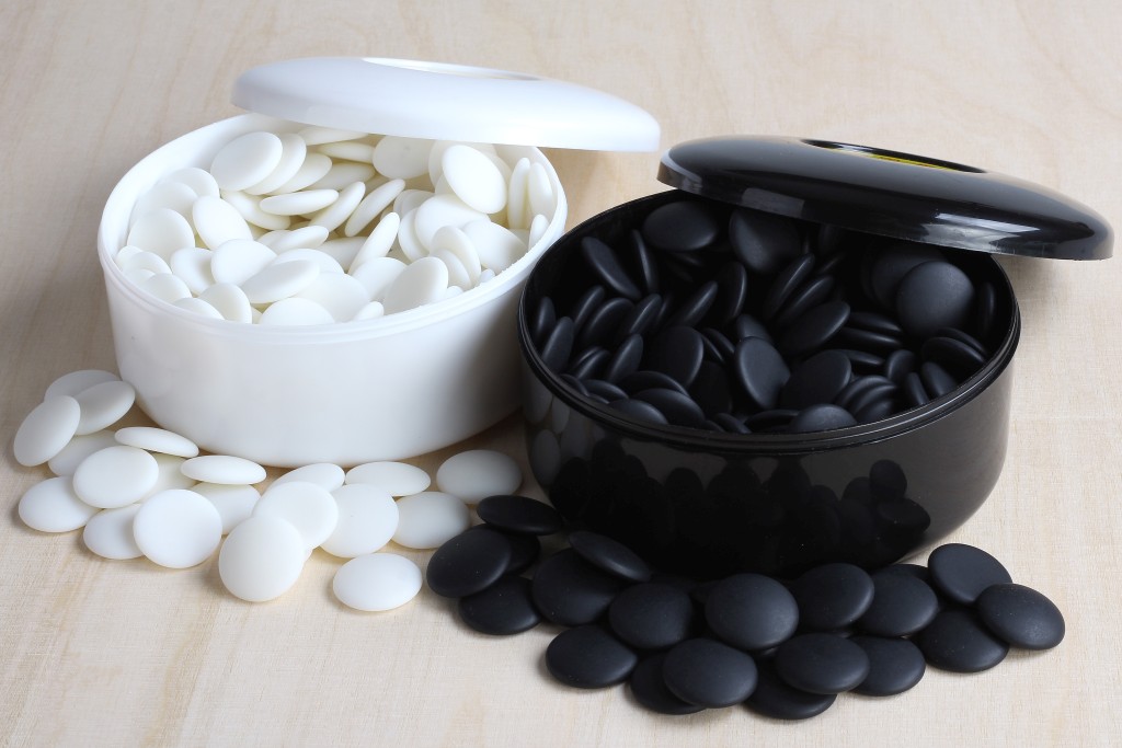 W zestawie znajduje się 181 kamieni czarnych oraz 180 kamienia białych.