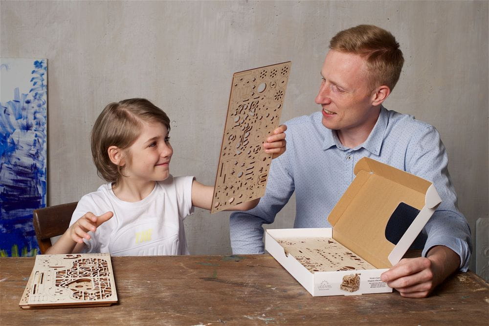 Modele drewniane Ugears nie wymagają sklejania, dzięki czemu praca jest czysta i nadaje się zarówno dla dorosłych jak i dla dzieci, które w ten sposób lubią wykorzystywać swój wolny czas.