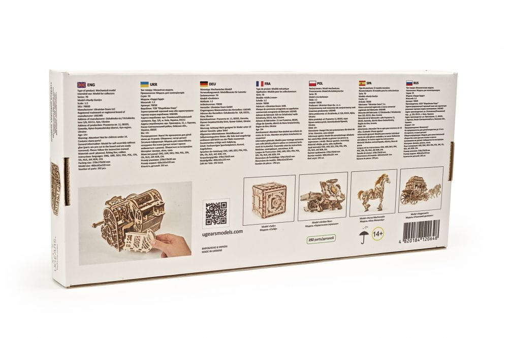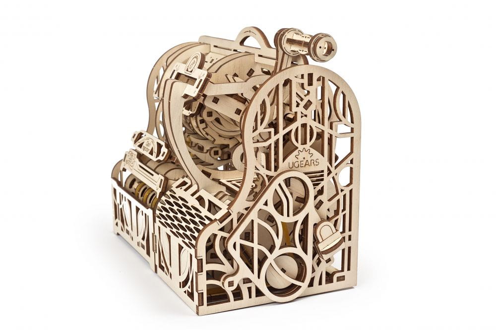 Kasa fiskalna Ugears w stylu retro jest jak najbardziej praktyczna. Wpłacaj i wypłacaj, kiedy zechcesz, zarówno bilon jak i banknoty. Wykonane z dbałością o szczegóły drewniane puzzle mechaniczne 3D, 405 elementów - poziom trudności: ciężko.
