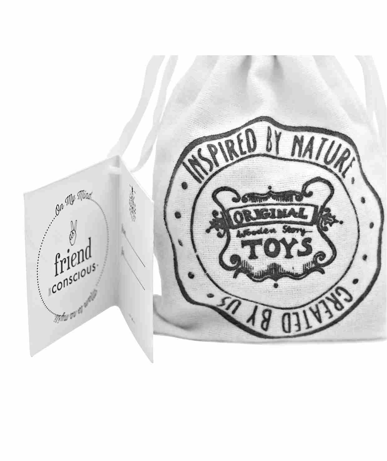 Klocki drewniane Mam to na Myśli… marki Wooden Story to oryginalny i nietuzinkowy sposób na wyrażenie uczuć. Zapakowane w miękki, bawełniany woreczek, stanowią wyjątkowy prezent, zarówno dla siebie, jak i dla bliskiej osoby. W środku znajdują się dwa klocki drewniane z wygrawerowanymi słowami w języku angielskim: Conscious, Friend oraz trzeci z symbolem zwycięstwa. Te wyjątkowe klocki pozwolą Ci wyrazić to, co trudno przekazać słowami – idealne na prezent, który trafi prosto do serca. Możesz je także postawić w swoim ulubionym miejscu, by codziennie przypominały Ci, co naprawdę ma znaczenie. Do woreczka dołączony jest bilecik z napisem „Mam to na myśli” oraz miejsce na osobisty podpis, co sprawia, że klocki stają się wyjątkowym, spersonalizowanym podarunkiem.