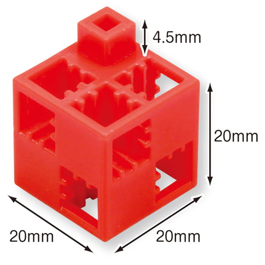 Wielkość pojedynczego klocka bez wypustki to 2 x 2 cm.
