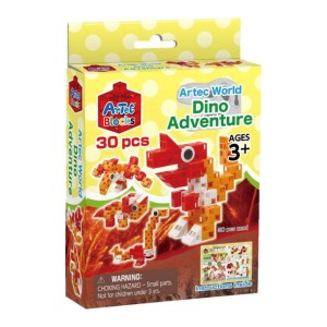 Zestaw zawiera 30 klocków pozwalających na zbudowanie różnych dinozaurów oraz instrukcję i oczka.