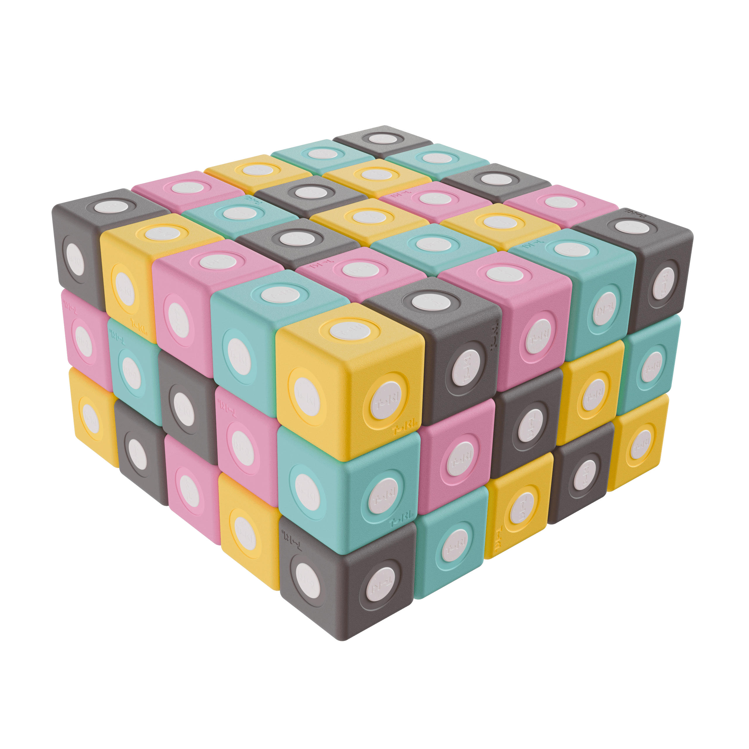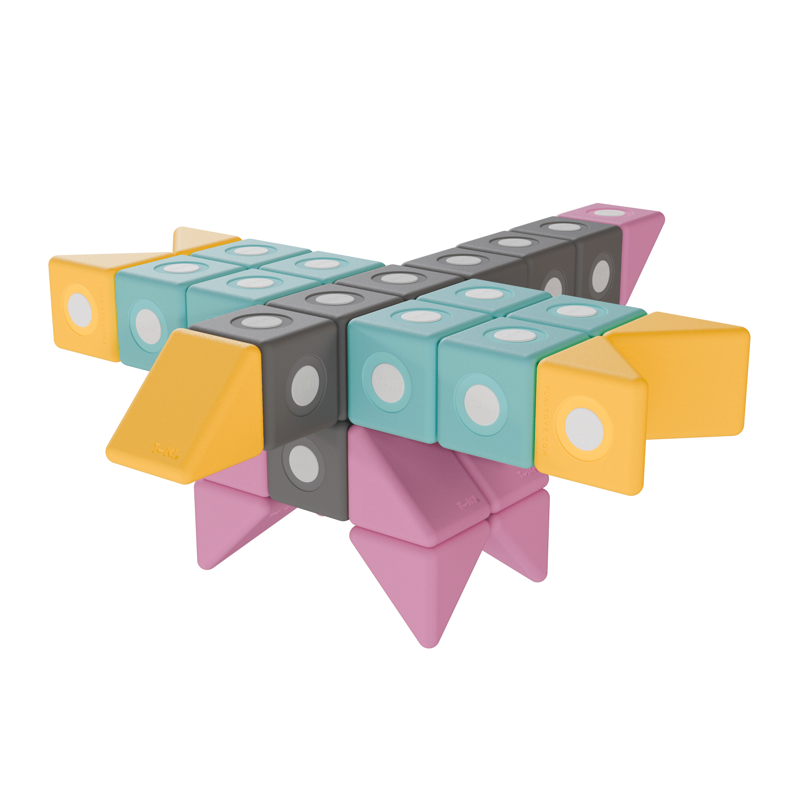 Lekkie duże klocki, które przyciągają się do siebie, dzięki temu można je łączyć ze sobą ze wszystkich stron. Nie mają ostrych krawędzi, są wygodne do uchwycenia dla małych rączek i przyjemne w dotyku.