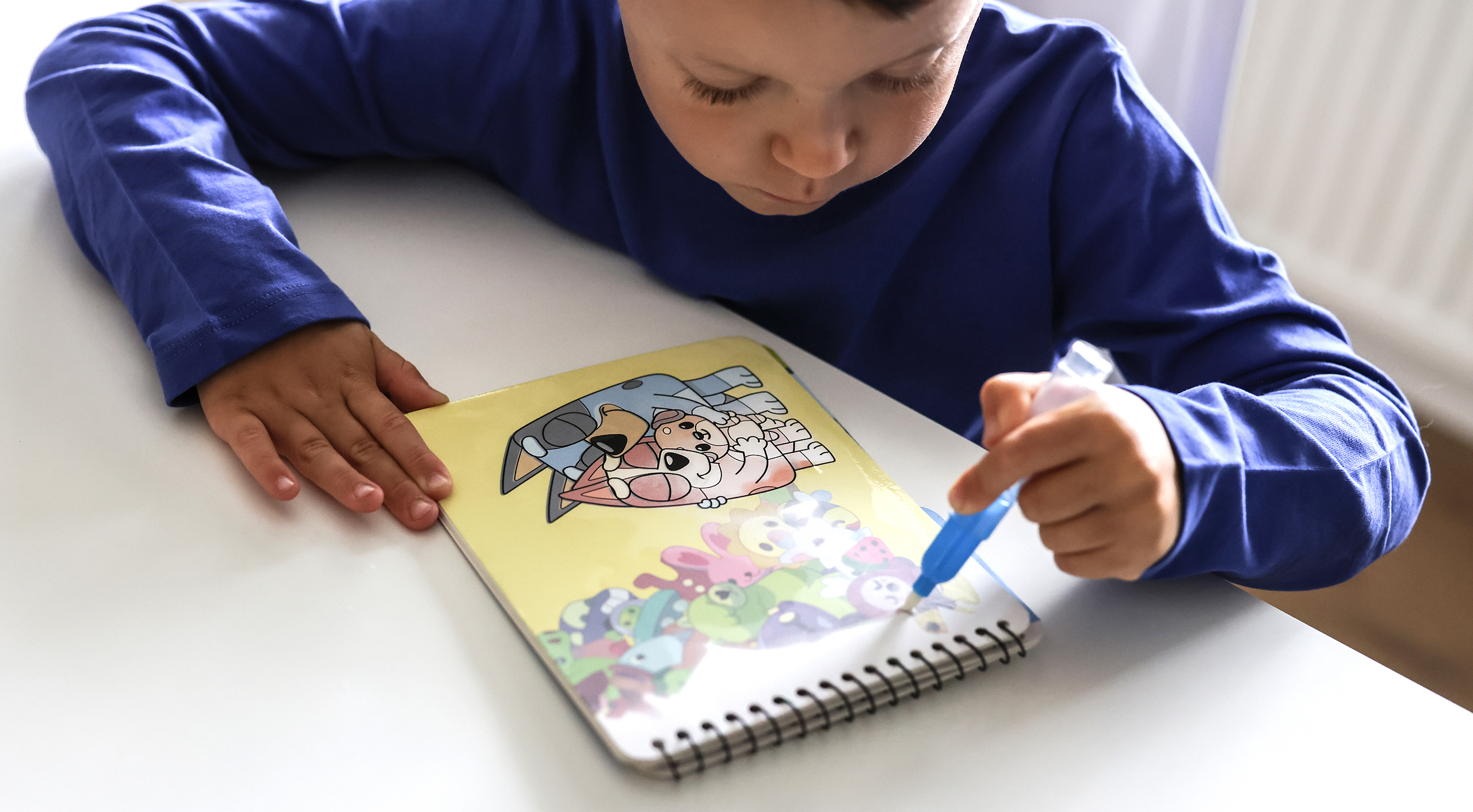 Dzięki 8 różnym obrazkom dzieci mogą odtwarzać przygody ze świata Bluey. Mogą malować bez bałaganu – to idealne rozwiązanie dla małych artystów, którzy chcą tworzyć w każdej sytuacji!