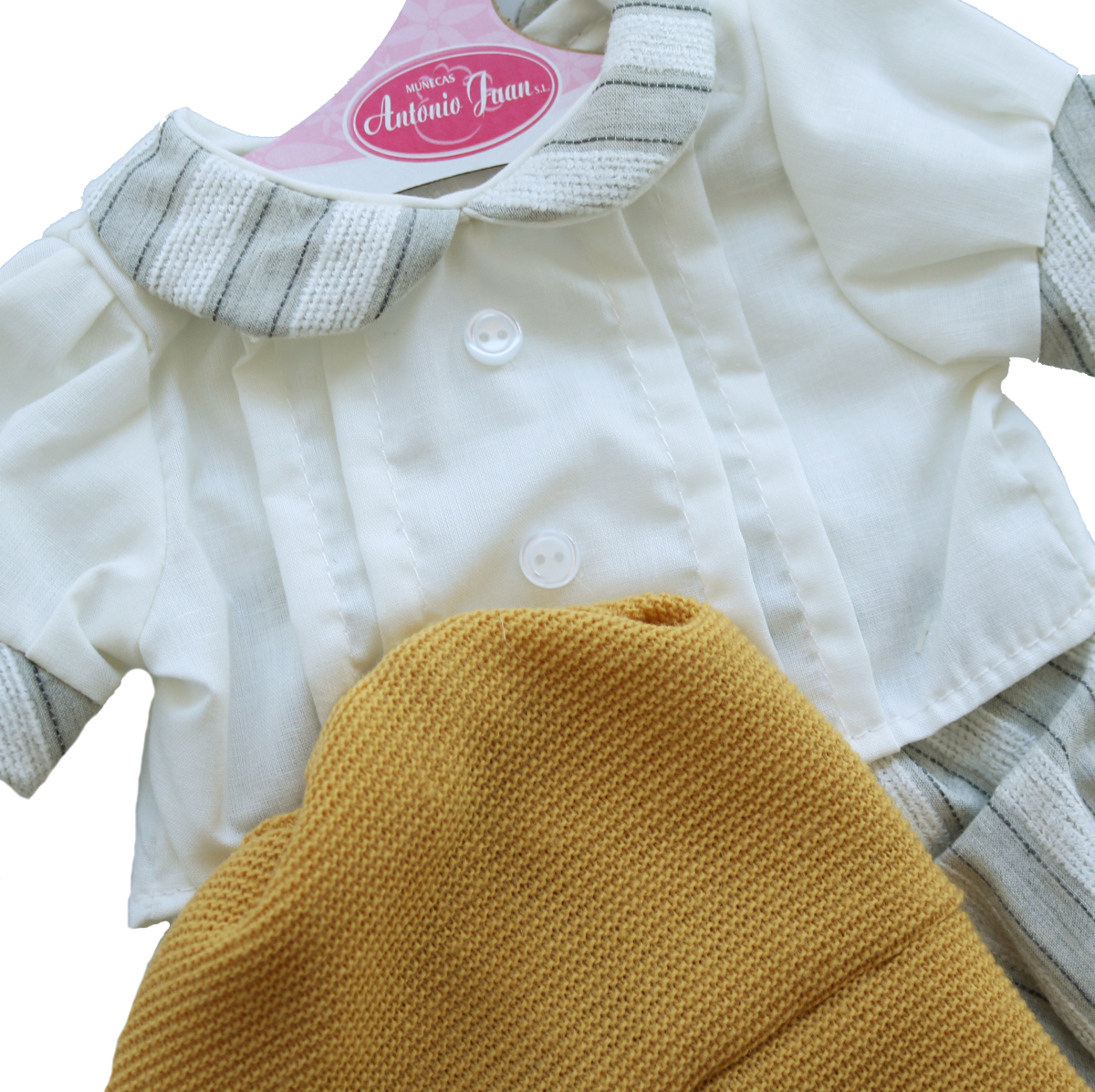 Hiszpańską firmę wyróżnia wysoka jakość materiałów przy produkcji lalek. Producent wychodząc naprzeciw oczekiwaniom małych użytkowniczek poszerzył ofertę o dodatkowe ubranka i akcesoria do lal zgodnie z ich wymiarami. Precyzyjne wykończenie, doskonała jakość tworzywa to charakterystyczne cechy, które wyróżniają asortyment Antonio Juan. Zestawy ubranek są wyprodukowane w Hiszpanii i spełniają wszelkie restrykcyjne normy bezpieczeństwa.