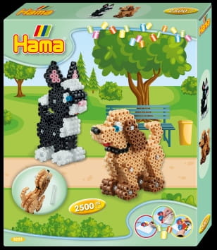 Zestaw koralików kot i pies 3D midi do zaprasowania z podkładką, 2500 sztuk HAMA, symbol 3253.