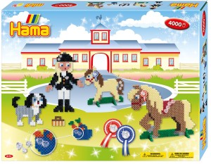 Stadnina koni - zestaw koralików midi do zaprasowania lub szycia z 2 podkładkami, 4000 sztuk HAMA, symbol 3151.