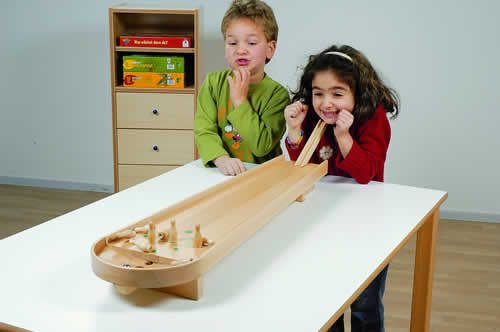 Wspaniała rozrywka - tradycyjna gra w kręgle do zabawy w domu. Celem gry jest strącenie kręgli. Ustawiamy kręgle na wyznaczonych punktach. Kule puszczamy z prowadnicy celując w kręgle. Kto najmniejszą liczbą uderzeń wywróci wszystkie kręgle? A może ktoś potrafi tak trafić, aby nie przewrócić środkowego kręgla? Gracze mogą dowolnie ustalać zasady gry i punktację. Metalowe kule po trafieniu przetoczą się prowadnicą pod spodem planszy i same wracają do zawodnika.