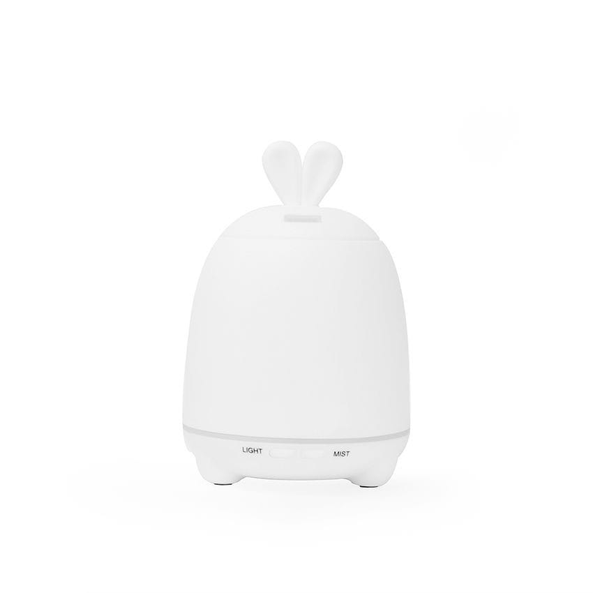 Lampka DYFUZOR Rabbit & Friends z króliczymi uszami przynosi szereg korzyści płynących z nawilżenia powietrza oraz aromaterapii. To sprawdzony sposób na poprawienie poziomu wilgotności w pokoju dziecka.Chłodna mgiełka wytwarzana przez urządzenie jest przyjemna i bezpieczna. Światło LED ze zmieniającymi się kolorami, pozwala na wygodną obsługę dyfuzora w godzinach nocnych. Lampka z dyfuzorem to zdrowy, przyjemny i komfortowy sen każdego dziecka.