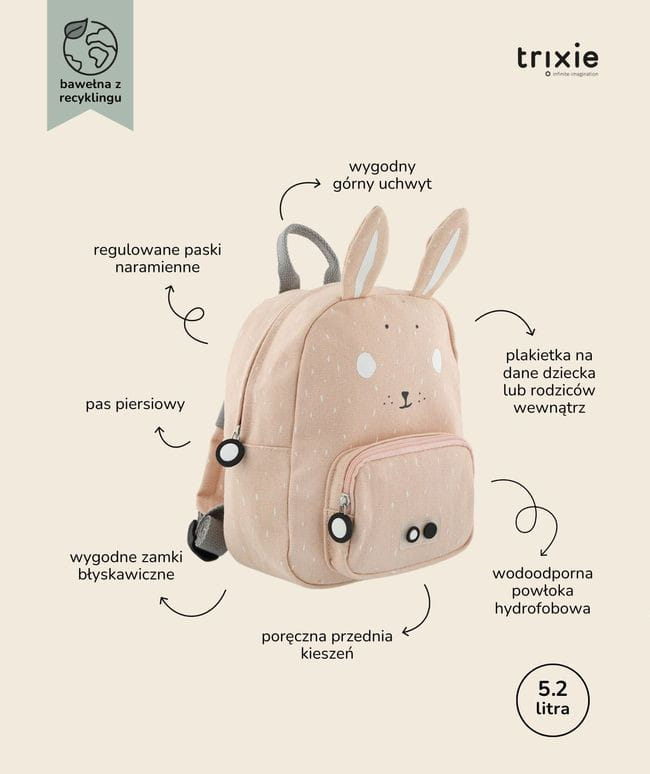 Wyjątkowo lekki i pojemny plecak mały z wesołym zwierzakiem, zaprojektowany z myślą o komforcie i funkcjonalności najmłodszych. Wyróżnia się niepowtarzalnym wzornictwem i unikalną kolorystyką. Pomieści przekąski, akcesoria do codziennej opieki lub ulubione zabawki bez problemu. Dzięki niemu dziecko jest przygotowane na każdą wycieczkę i przygody w przedszkolu.
