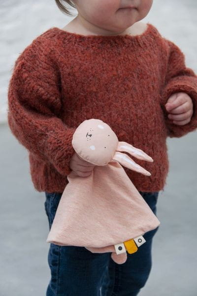 Królik Szmatka Przytulanka jest bardzo mięciutka, delikatna, miła i cieplutka. Doskonale się sprawdzi w domu, w podróży i na spacerze. Uroczy zwierzaczek i trzy fikuśne metki będą cieszyć małe paluszki, stymulując zmysł dotyku, który jest niezwykle istotny dla harmonijnego rozwoju psychoruchowego dziecka. Dzięki tym wszystkim cechom szmatka stanowi idealne połączenie potrzeb niemowląt i wymagań rodziców.