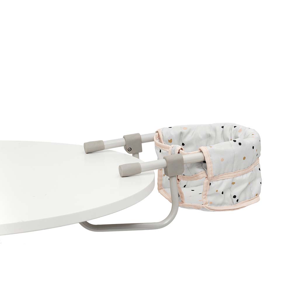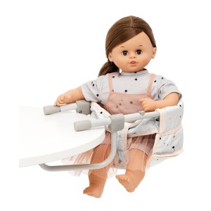 Twoja lalka chciałaby zasiąść razem z Tobą przy stole! To praktyczne, montowane do blatu mobilne krzesełko to wszystko czego potrzebujesz, aby wspólnie z Twoją lalką cieszyć się posiłkami, bawić się lub rysować. Siedzisko jest wyściełane miękkim materiałem, który zapewnia komfort i pięknie wygląda. Z łatwością zawiesisz to małe poręczne krzesełko na stole, a po skończonej zabawie zdejmiesz je w mgnieniu oka. To takie proste jak 1,2,3!