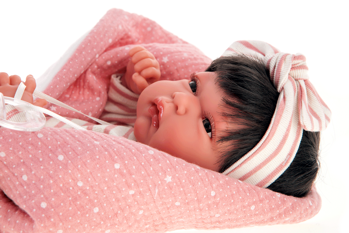 Lalka Recien Nacida Toneta 60146 to model z najnowszej kolekcji roku 2021. Dziewczynka została odwzorowana na podstawie prawdziwego maluszka. Zauważyć można to poprzez dokładnie odzwierciedlone dołeczki i fałdki na tułowiu i kończynach. A także linie papilarne na stópkach i dłoniach czy też zaznaczony pępek.