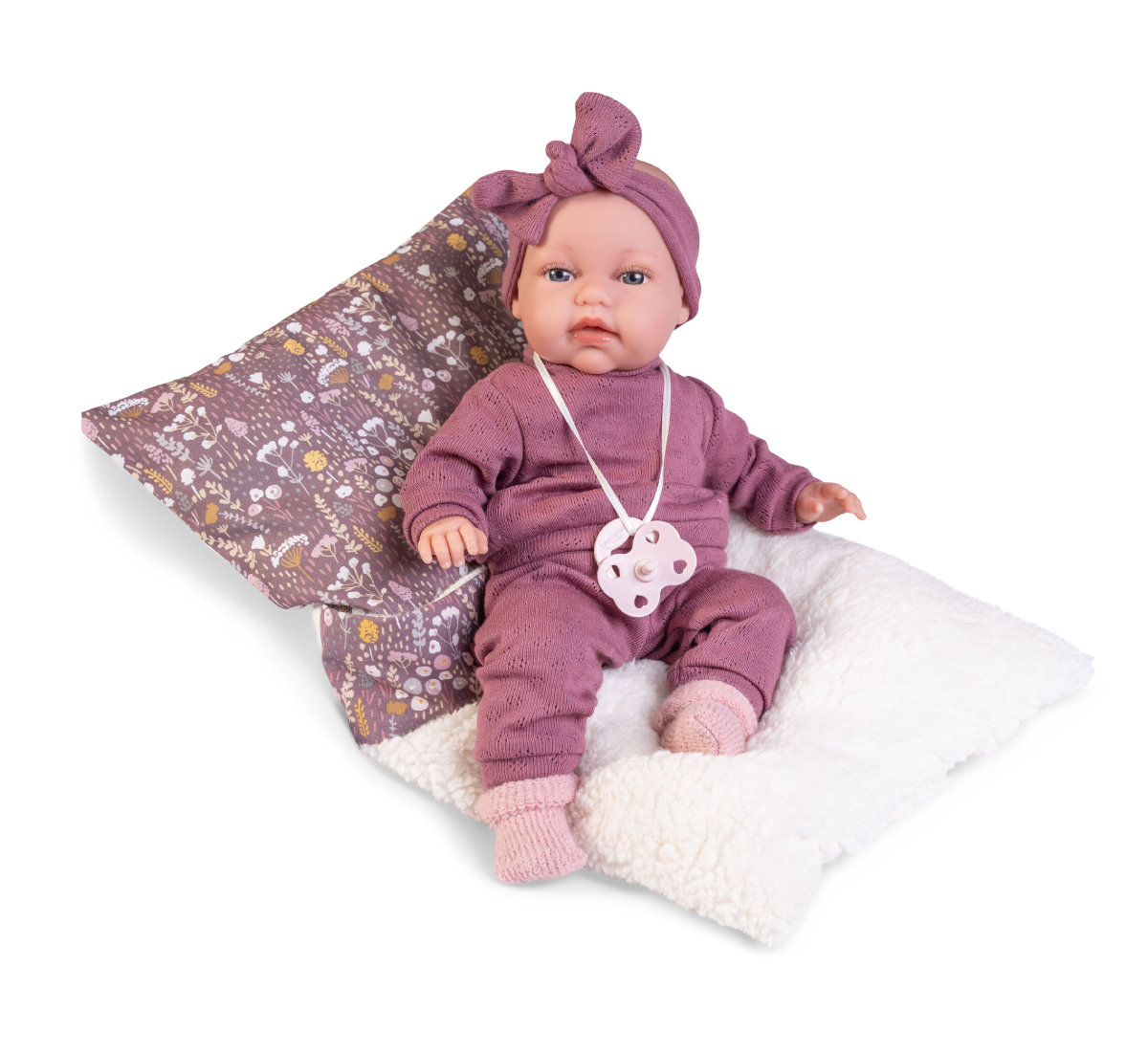 zestawie znajduje się także smoczek na tasiemce oraz wygodny śpiworek w