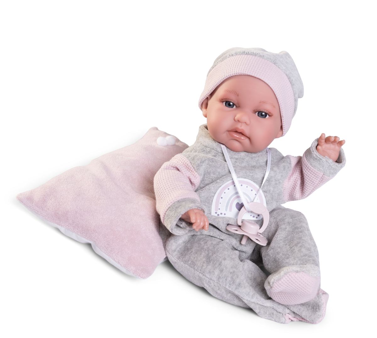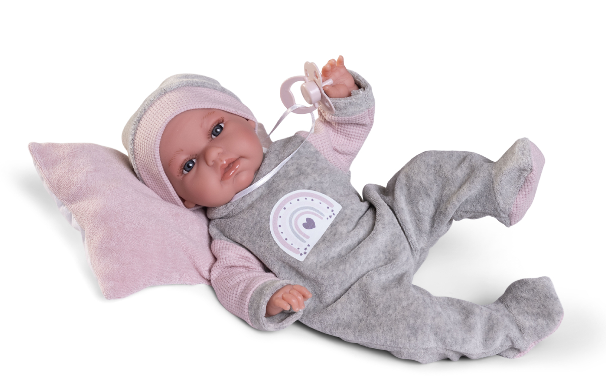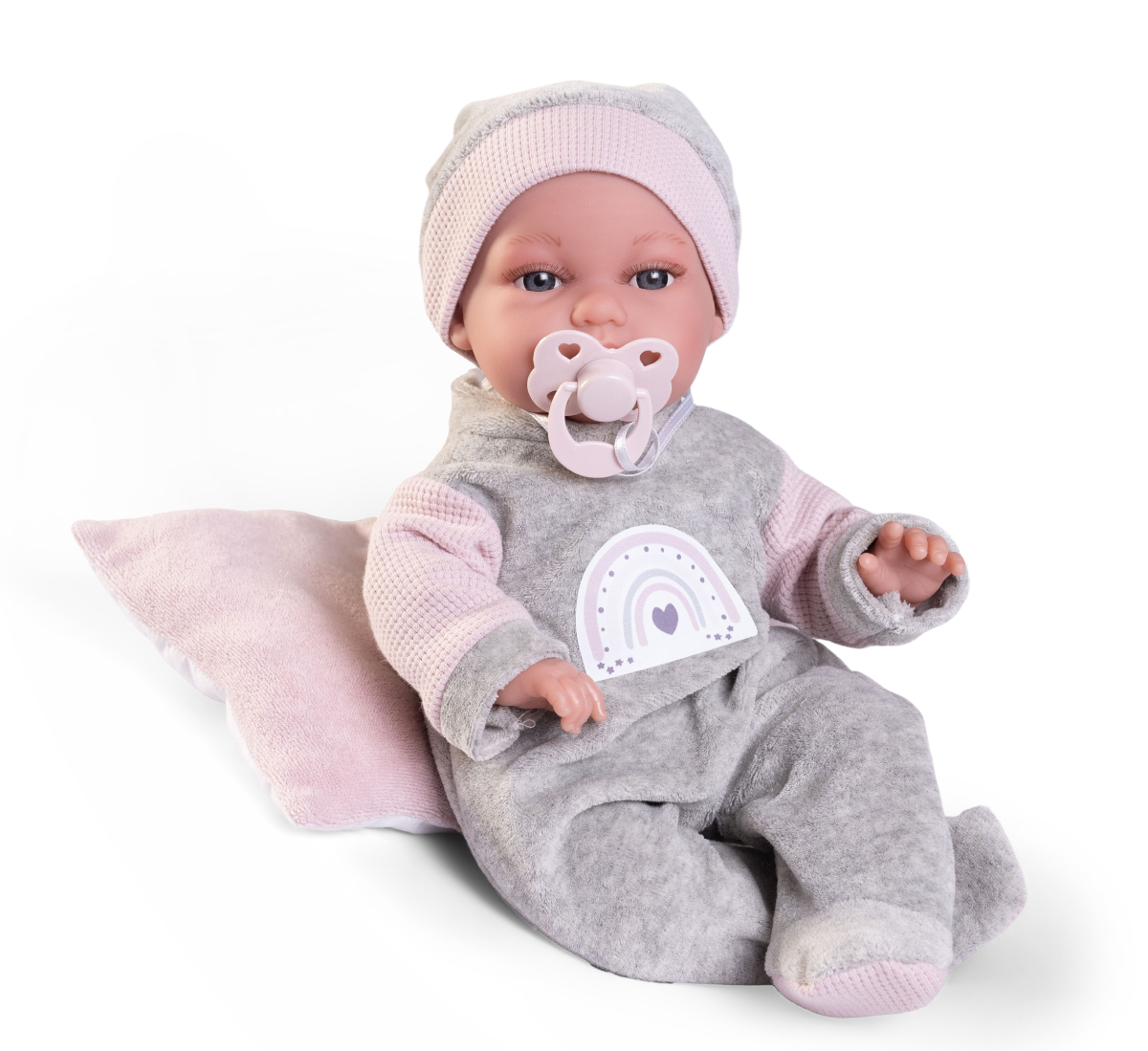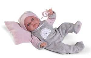 Obok bobasów winylowych oraz funkcyjnych, w kolekcji renomowanej marki Antonio Juan znaleźć można także najwyższej jakości lalki hiszpańskie z serii Posturitas. Baby Toneta 70363 to kolejna dziewczynka z miękkim brzuszkiem, która wyróżnia się oryginalną konstrukcją. Specjalny stelaż wewnętrzny z drucików umożliwia posadzenie dziewczynki oraz ułożenie w każdej, dowolnej pozie. Zachwyca także charakterystyczna dla Tonety pogodna twarzyczka oraz niebieskie oczka opatrzone wianuszkiem długich rzęs. 34-centymetrowa lala waży około 985 g i została zaprojektowana dla dzieci w wieku od 3 lat.