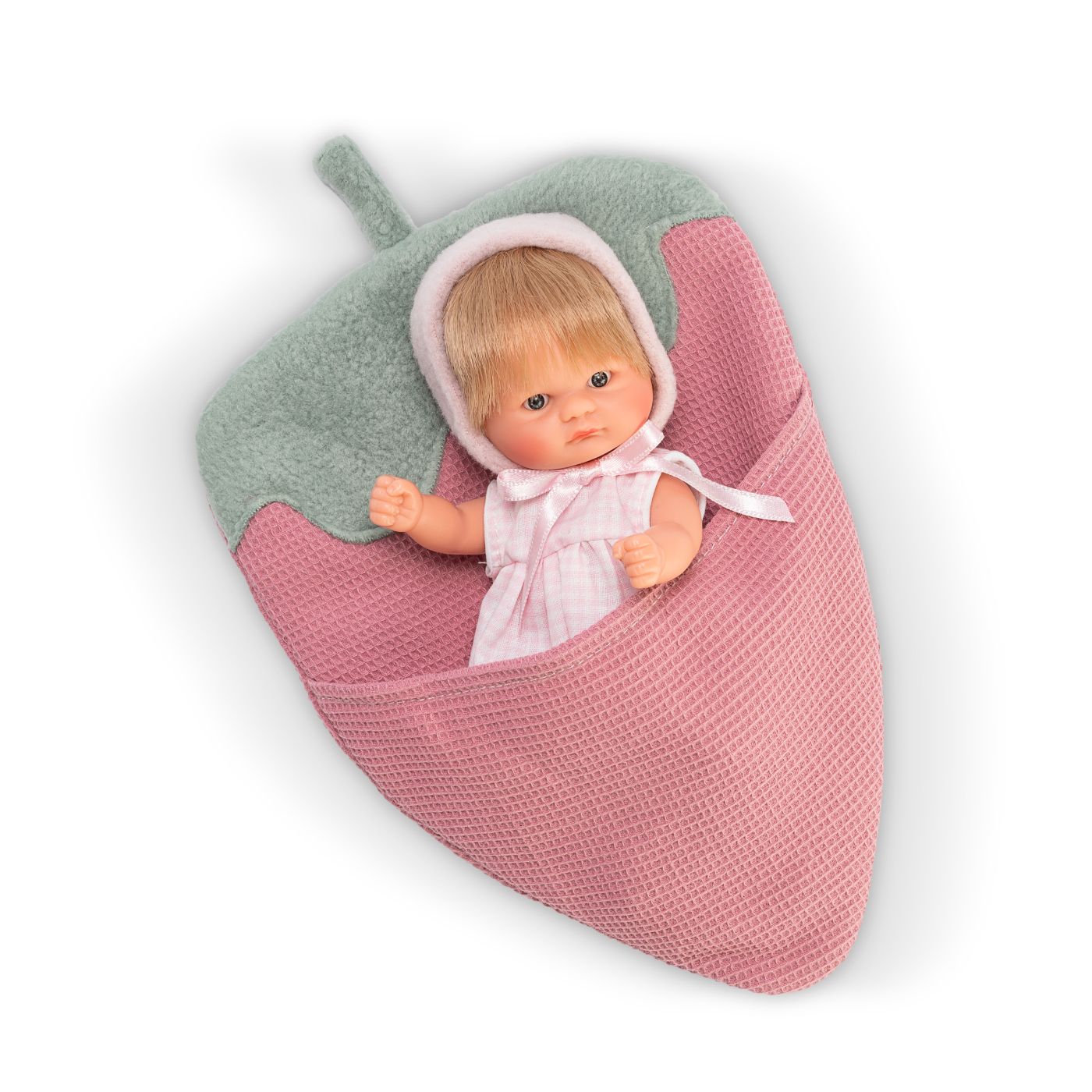 Hiszpańskie lalki winylowe z serii Bomboncin są idealne do przebierania, kąpania oraz zabaw w troskliwą mamusię. Model Asi 0117910 to słodka i śliczna dziewczynka z krótkimi blond włosami, dostępna w komplecie z miękkim łóżeczkiem w kształcie truskawki. Zaprojektowana dla dzieci w wieku od 3 lat. Zachwyca dopracowanym wyglądem i klasycznym, szytym ręcznie strojem. Wysokiej jakości winyl przypomina w dotyku delikatną skórę bobasa. Naturalny, grymaśny wyraz twarzy, zaciśnięte piąstki, zaznaczone linie papilarne oraz malutkie paznokcie sprawiają, że lalka wygląda jak prawdziwe dziecko.