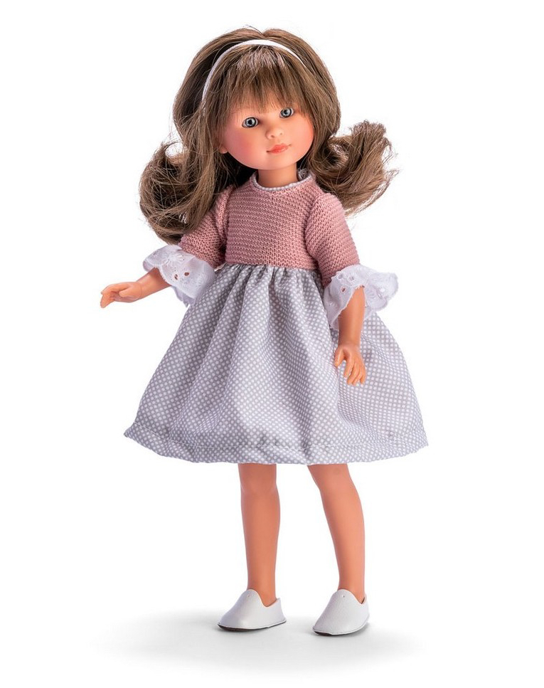 Dziewczynka o imieniu Celia 0167120 to jedna z lal z wiosennej kolekcji hiszpańskiej marki Asi. To filigranowa dziewczynka o wysokości 30 cm z długimi pofalowanymi brązowymi włosami i grzywką na prosto. Czuprynę dziewczynki można czesać i upinać w różne fryzury. Nasza pociecha poczuję się wówczas jak prawdziwa fryzjerka. Fryzurę Celi podkreśla cieniutka, atłasowa opaska w białym kolorze. Wyjątkowo realistyczna i perfekcyjnie dopracowana lalka urzeka przede wszystkim kolekcjonerki i miłośniczki zabawy lalkami, zarówno te małe jak i duże.