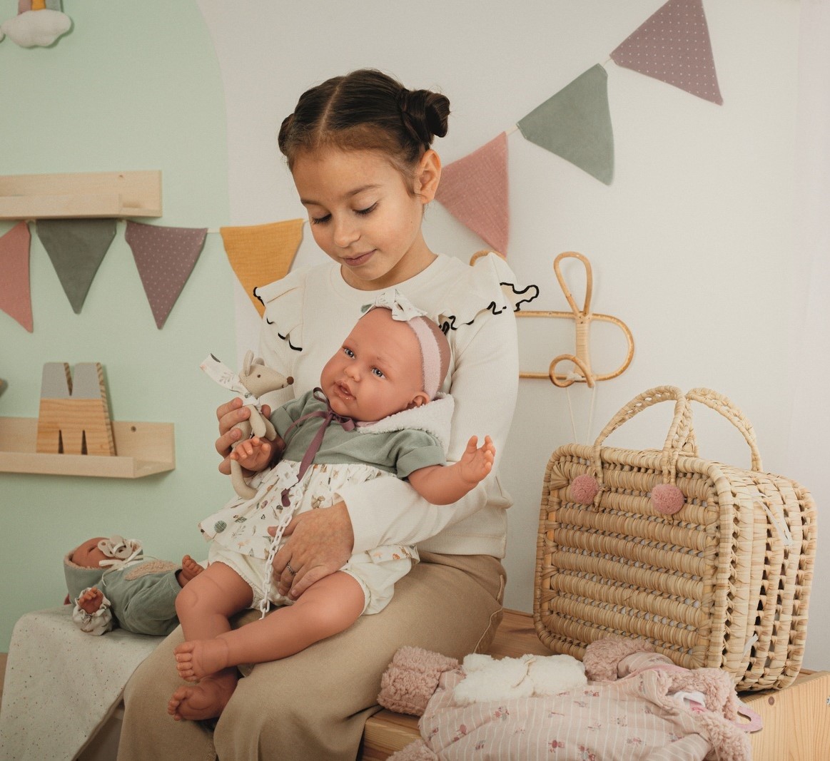 Mi Primer Reborn to ekskluzywna kolekcja lalek hiszpańskich rozpoznawalnej na całym świecie marki Antonio Juan. Bobasy mają 52 cm wysokości i ważą około 2790 g. Wyglądają jak prawdziwe dzieci dzięki ręcznemu wykonaniu i dbałości o każdy szczegół. Hiszpańskie winylowe lale z miękkim brzuszkiem są cenione przez kolekcjonerów, właścicieli szkół rodzenia i sklepów z wózkami dziecięcymi, a także uwielbiane przez małe miłośniczki oryginalnych zabawek.