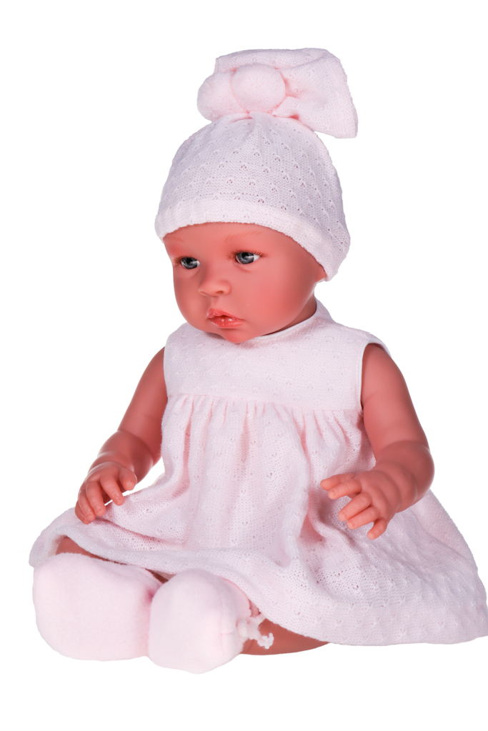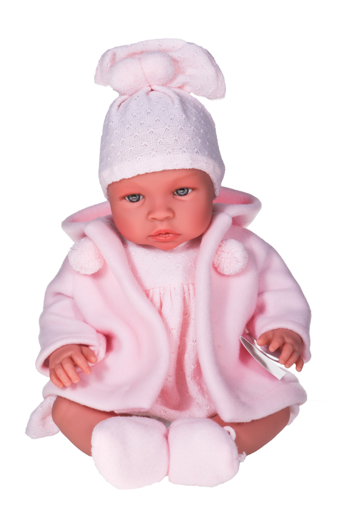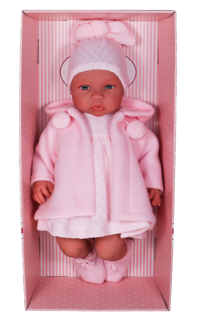 Zestaw ubranek przyda się do otulenia lali szczególnie w chłodniejsze dni. Noworodek ubrany jest w różową sukienkę z dzianiny oraz polarową kurtkę z kapturem w tym samym kolorze. Sukienkę zapina się na rzepę, aby ułatwić zabawę naszego urwisa. Strój uzupełnia różowa czapka na gumce z pomponami w kolorze i kroju sukienki, a także polarowe zawiązywane kapcie i bufiaste majtki na gumce. Ubrania dziewczynki można zdjąć, aby umilić zabawę i nabrać wprawy w przebieraniu pociechy. Wyjątkowy strój sprawia, że nasza pociecha może zabrać ze sobą lalę na przyjęcie urodzinowe czy niedzielny spacer. Dziecko może troszczyć się o swoje maleństwo, przebierać je i zabrać wszędzie, by poczuć się jak prawdziwa mama.