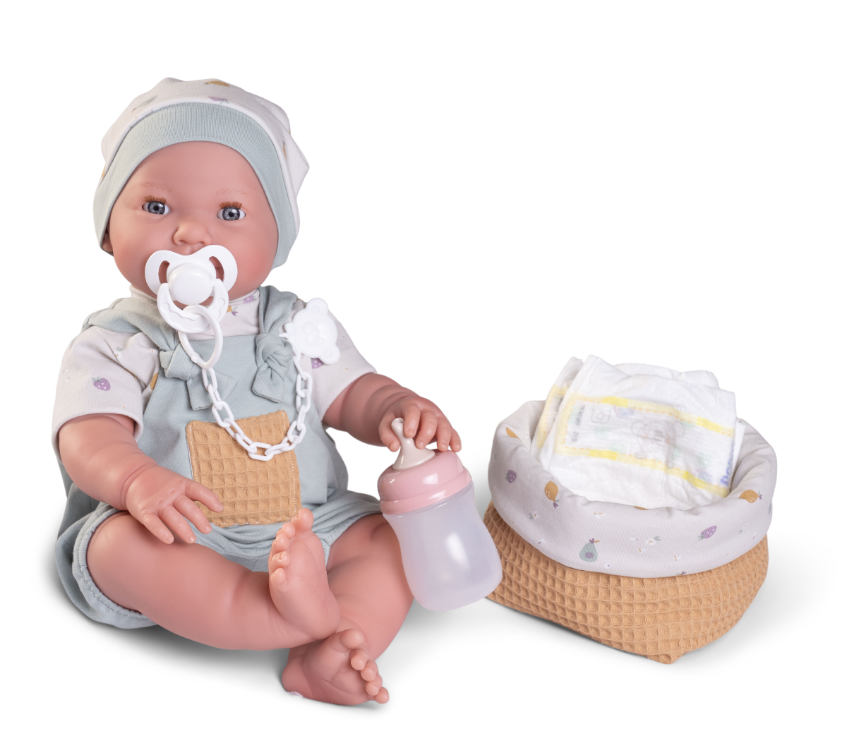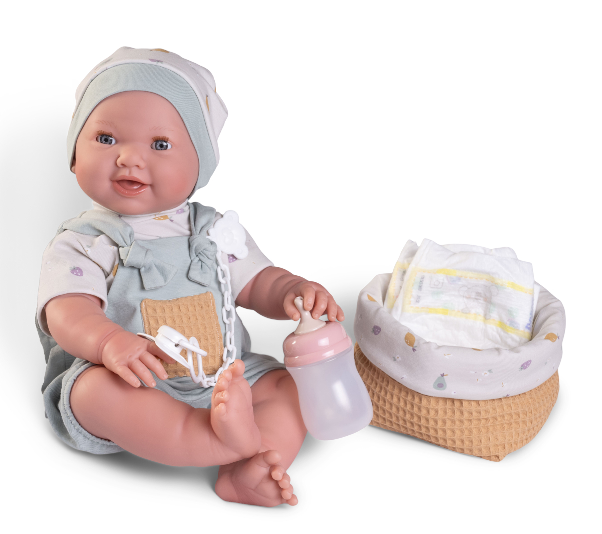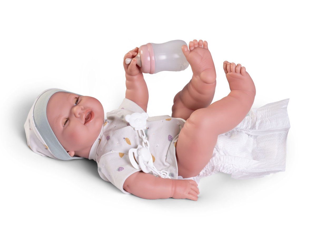 Zawsze warto wzbogacić kolekcję zabawek dziecka o wyjątkową lalkę interaktywną, inspirującą do kreatywnego spędzania czasu. Winylowy bobas o wysokości 42 cm ma na imię Mia. Po napojeniu z butelki siusia. Zachęca dziewczynkę do zaopiekowania się maleństwem. Zabawę uatrakcyjniają perfekcyjnie dopasowane akcesoria: smoczek z klipsem na łańcuszku, butelka, pieluszka oraz wyściełany tkaniną koszyczek.
