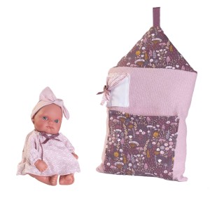 Dziewczynka ma na sobie sukieneczkę z przyszytą kokardą, która jest na długi rękaw. Ubranko jest zapinane na rzepę, co ułatwi zdejmowanie stroju, a zabawa w przebieranie stanie się jeszcze ciekawsze. Komplet uzupełnia opaska z kokardą i śpiwór. Dodatek posłuży do przenoszenia lali i jako łóżeczko. Mufly jest tak mała, że można zabrać ją wszędzie tam, gdzie chcesz się z nią bawić.