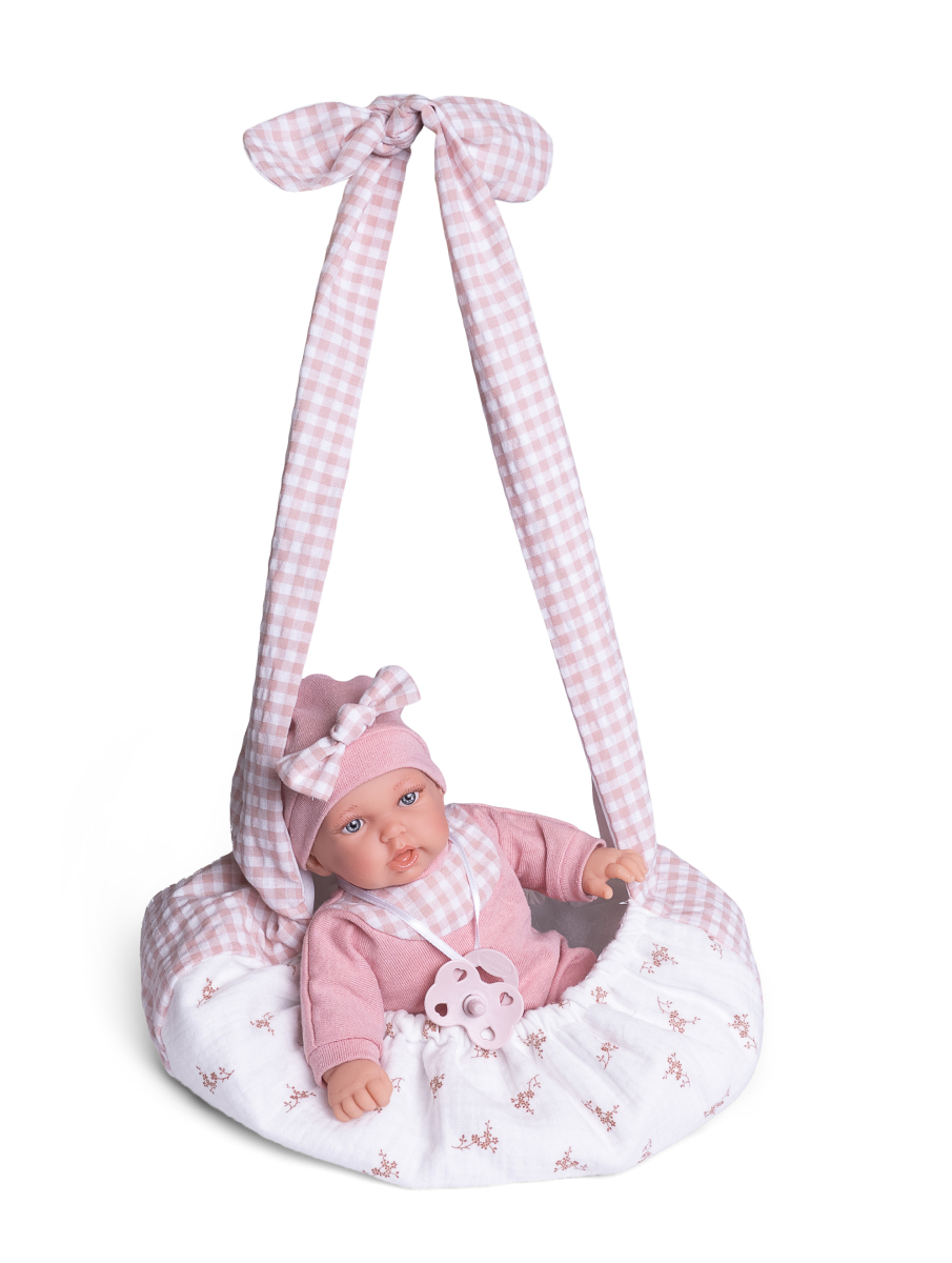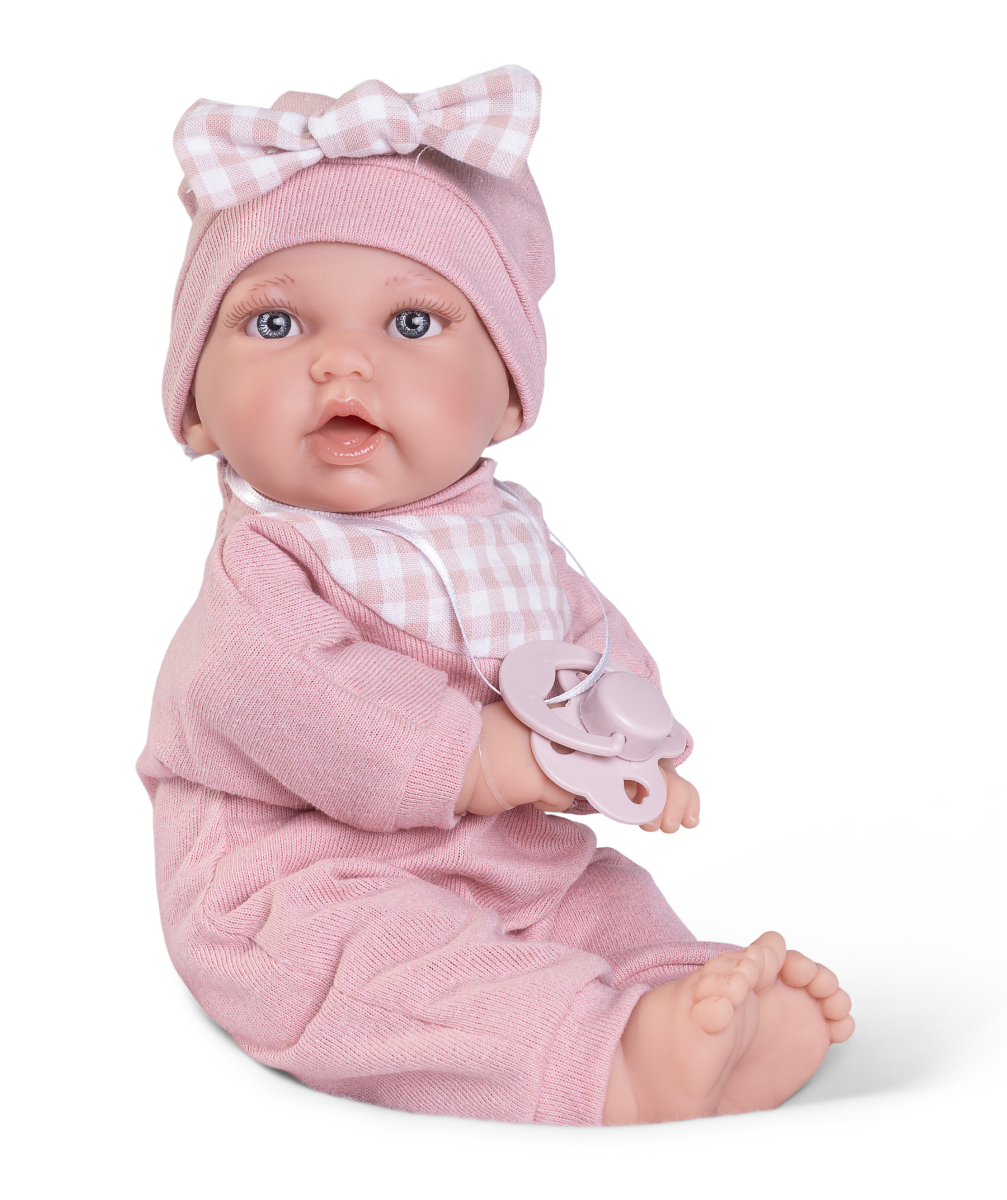 różu. Całość dopełnia słodka czapeczka z kokardką w kratkę oraz smoczek