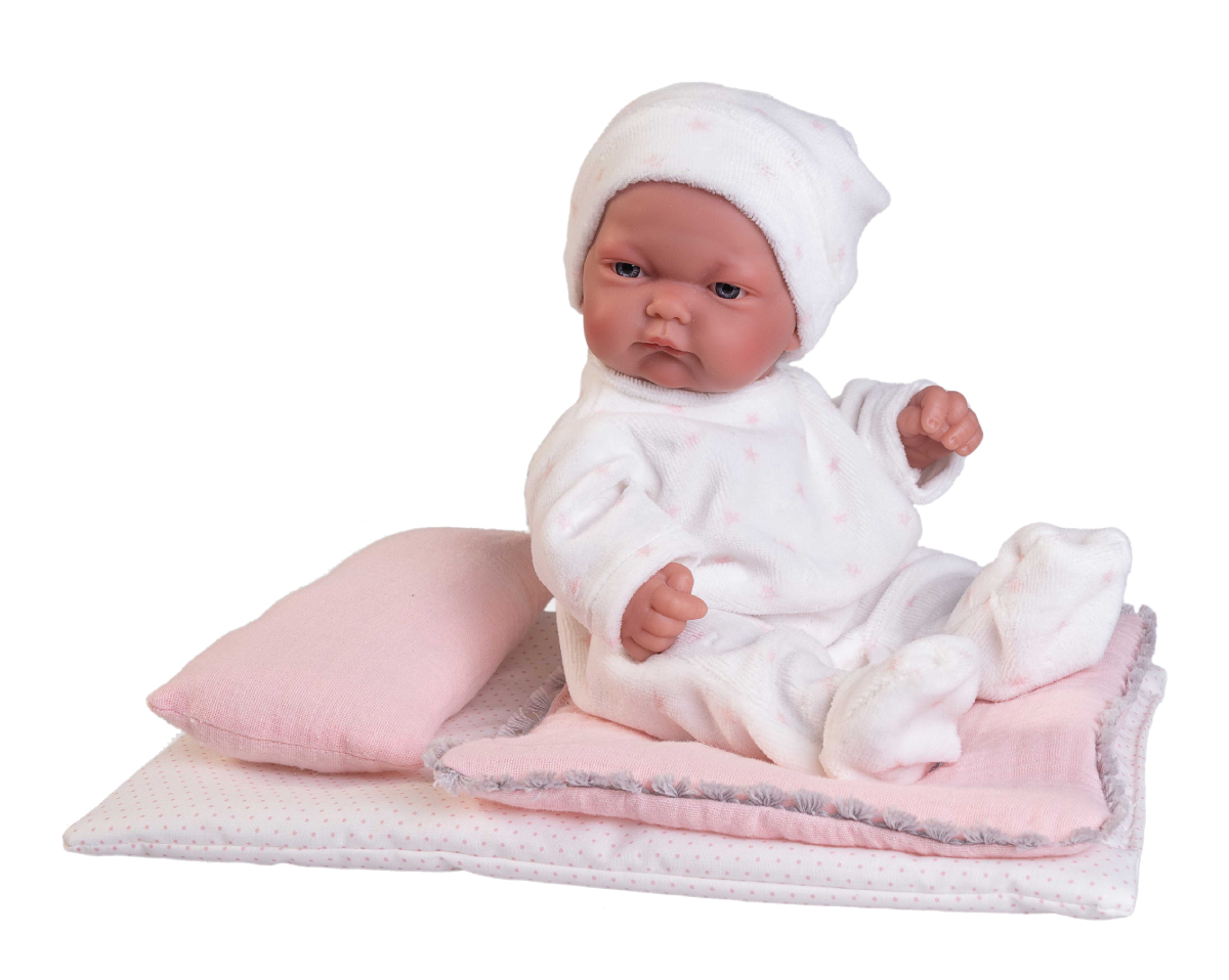Urocze maleństwo z łóżeczkiem o imieniu Pitu 84094 to model z najnowszej kolekcji 2023 oferowanej przez hiszpańską markę Antonio Juan. Lala ma 26 cm wzrostu i waży 410 g. Bobas jest anatomiczny i posiada zaznaczoną płeć (dziewczynka). Urocze rysy twarzy podkreśla czapka w gwiazdki. Dziewczynka nie ma rzęs, brwi oraz włosów, dlatego jest całkowicie bezpieczna dla Twojego dziecka. Produkt przeznaczony jest do zabawy dla dzieci powyżej 2 roku życia.