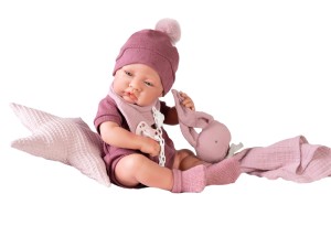 Noworodek z króliczkiem 50269 to nierozłączny towarzysz długich zabaw. Recien Nacida jest zawsze przygotowana na spacer w każdą pogodę. Hiszpańska lala uzupełnia kolekcję winylowych lalek do kąpieli. Proponowany model poszerzy bogaty asortyment serii Recien Nacida Antonio Juan. Bobas nie posiada włosów, a na jego główce można dostrzec rzeźbienia. Dodatkowo powierzchnię główki przyciemniono, aby wyglądała jak u prawdziwego noworodka. Urodę lali pokreśli założona na główkę czapka z tkanym wzorem i przyszytym pomponem. Laleczka ma 42 cm wysokości i waży około jednego kilograma. Ma ręcznie malowane niebieskie oczka wyglądające niczym jak u dziecka. Błękitne oczka dziewczynki są stale otwarte. Oprawę jej oczu podkreślą długie rzęsy oraz delikatnie narysowane włoski tworzące łuk brwiowy. Tak odwzorowana laleczka stanie się najlepszą przyjaciółką naszych dzieci i będzie bardzo szczęśliwa gdy ją przytulisz.