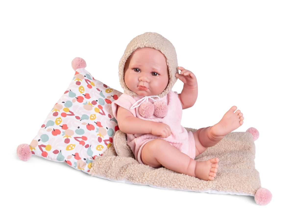 Uroczy bobas z wyjątkowej kolekcji lalek hiszpańskich marki Antonio Juan urzeka realistyczną mimiką twarzy, wyrażającą prawdziwe emocje. Recien Nacida Luca oczekuje od swojej małej opiekunki natychmiastowego przytulenia. Zwracają uwagę imitacje łez w kącikach ślicznych, brązowych oczu, opatrzonych długimi rzęsami. Lśniące usteczka i lekko zarumienione policzki dodają bobasowi realizmu. 42 - centymetrowa dziewczynka została wykonana z najwyższej jakości miękkiego, przyjemnego w dotyku winylu. Ma zaznaczoną płeć, pozostałość pępowiny, a na główce wyrzeźbione pierwsze niemowlęce włoski. Ważąca około 1700 g dziewczynka doskonale sprawdza się także podczas zabawy w kąpieli. Jest przeznaczona dla dzieci w wieku od 3 lat.