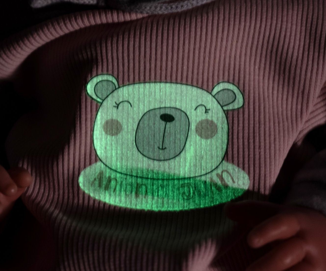 przepiękna miękka piżamka wyróżnia się aplikacją misia, świecącego w ciemności ,