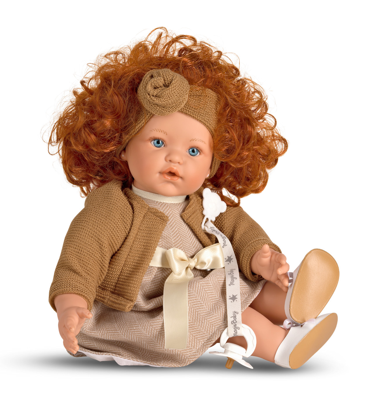 Magic Baby Dolls wygląda jak prawdziwe dziecko. Gęste, rude loczki są ujarzmione