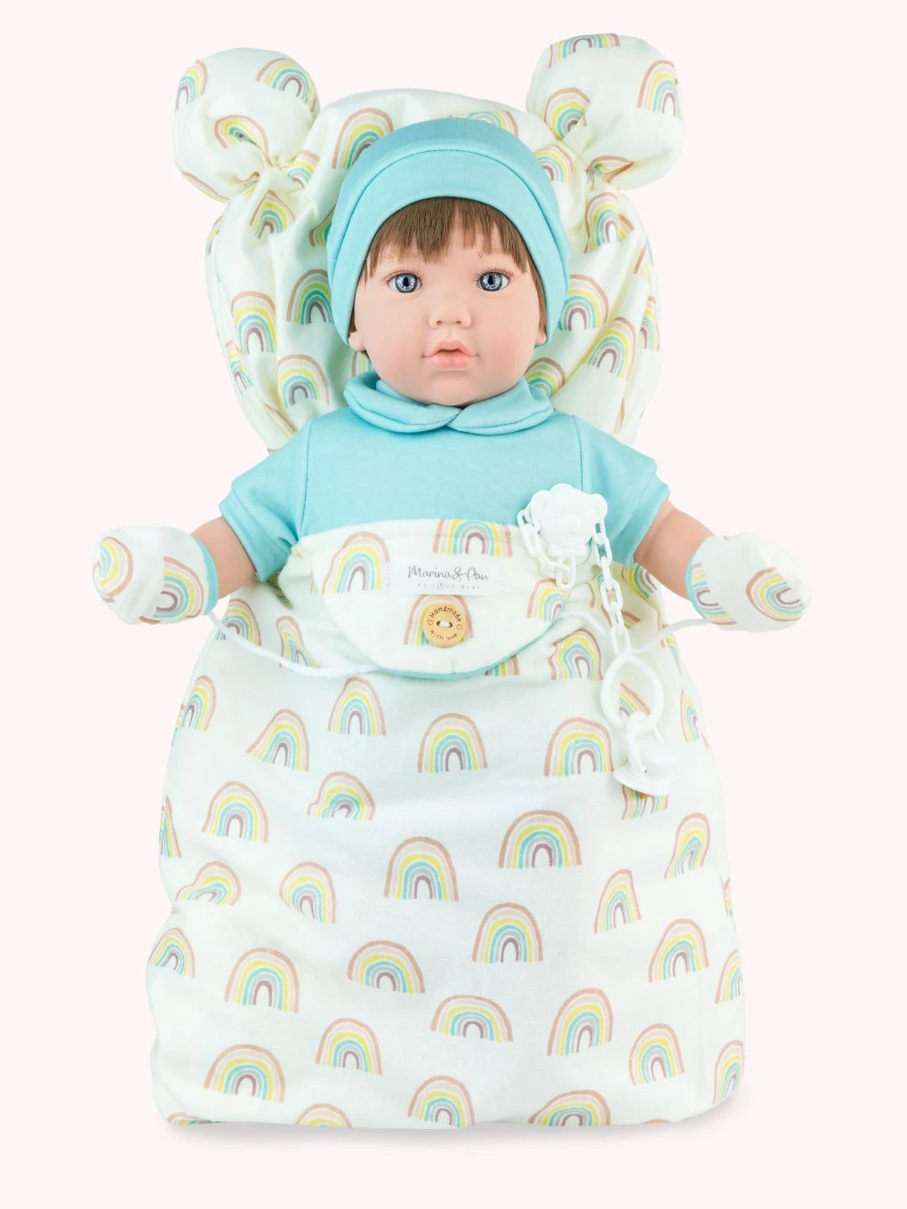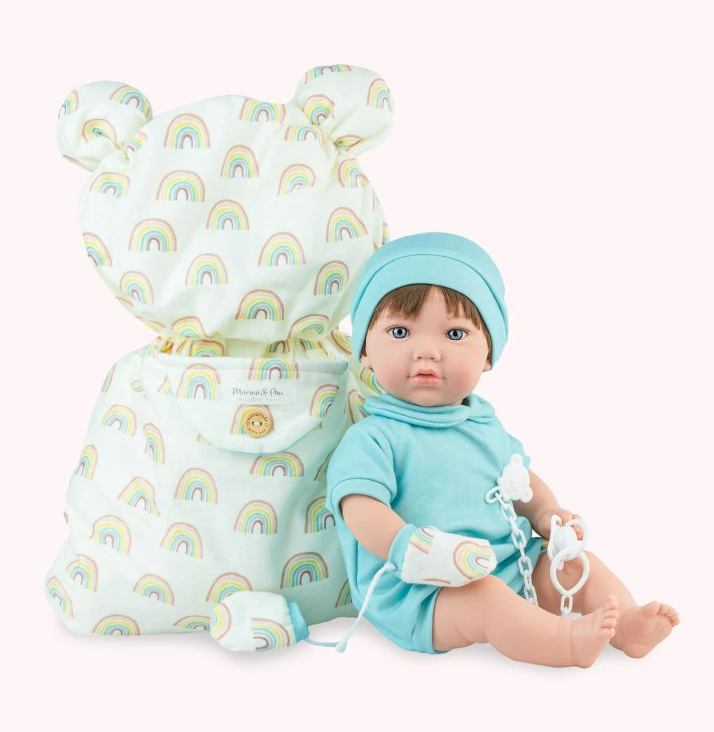 Lalka hiszpańska Teo Nana z tęczowym śpiworkiem Marina & Pau 899