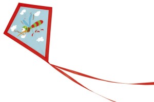 Klasyczny latawiec czerwony KOMAR z dwoma długimi ogonami.