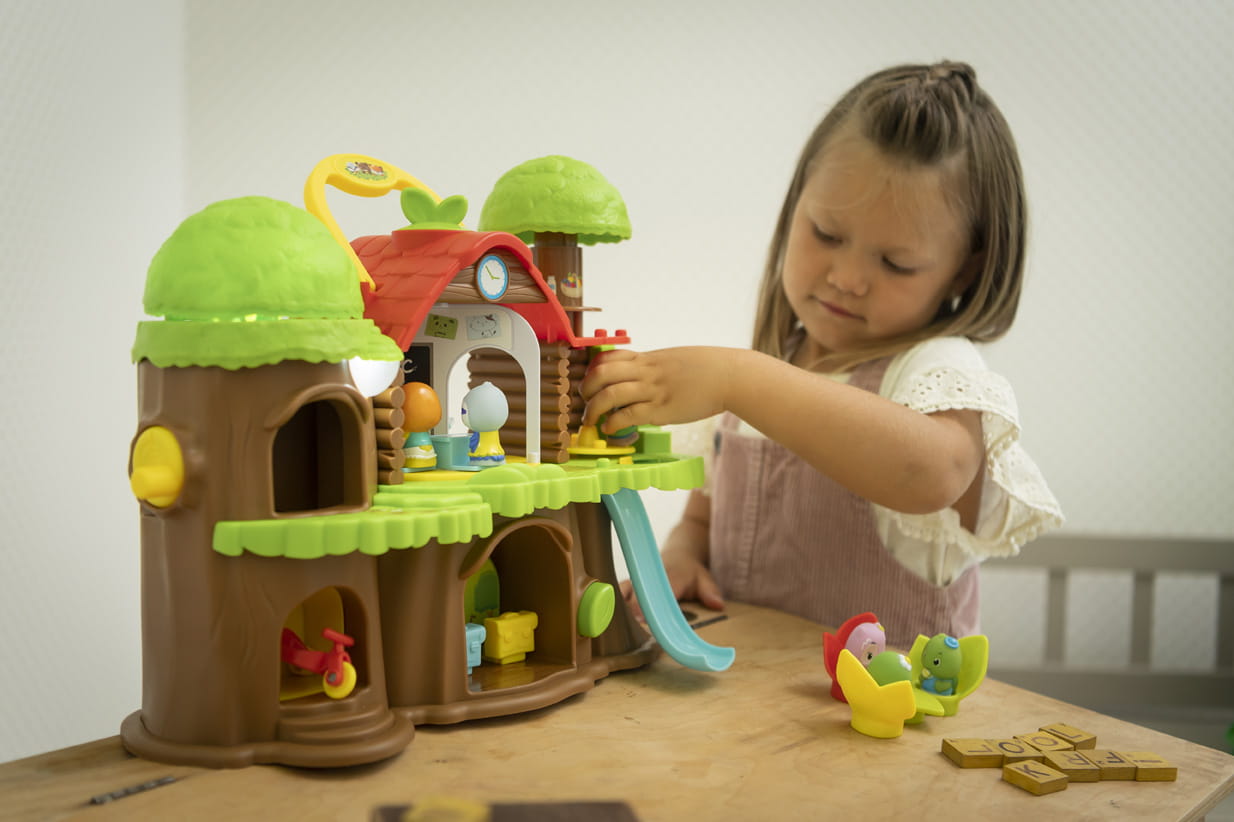 Zabawki Klorofil rozwijają wyobraźnię, bawiąc się każdą z nich można opowiedzieć tysiąc historii. Czy to domek czy drzewko - można je otwierać i zaglądać do środka, aby poznać życie Klorofilowych istotek. Dzięki temu, że zabawki mają wygodny uchwyt, można je z łatwością przenosić z miejsca na miejsce.