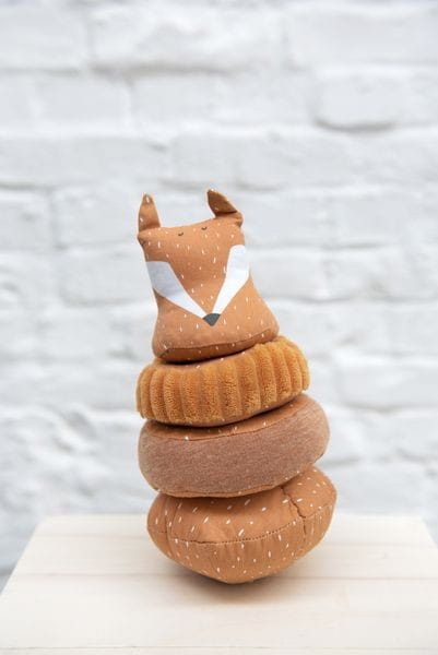 Wspaniała kiwająca się piramida z wesołym zwierzakiem, która wydaje urocze dźwięki za każdym razem, gdy ją stukniesz lub przesuniesz. Składająca się z podstawy z miękkim drążkiem, dwóch pierścieni wykonanych z różnych materiałów i główki zwierzaka. Celem jest założenie wszystkich elementów we właściwej kolejności, z główką zwierzaka na szczycie. Kiwająca się piramida uczy cierpliwości i wytrwałości. Stymuluje małą motorykę i logiczne myślenie. Jest zabawnym sposobem na poznawanie przez dziecko różnych materiałów, tekstur i dźwięków oraz sposobem na wyciszenie rozbrykanego malucha.