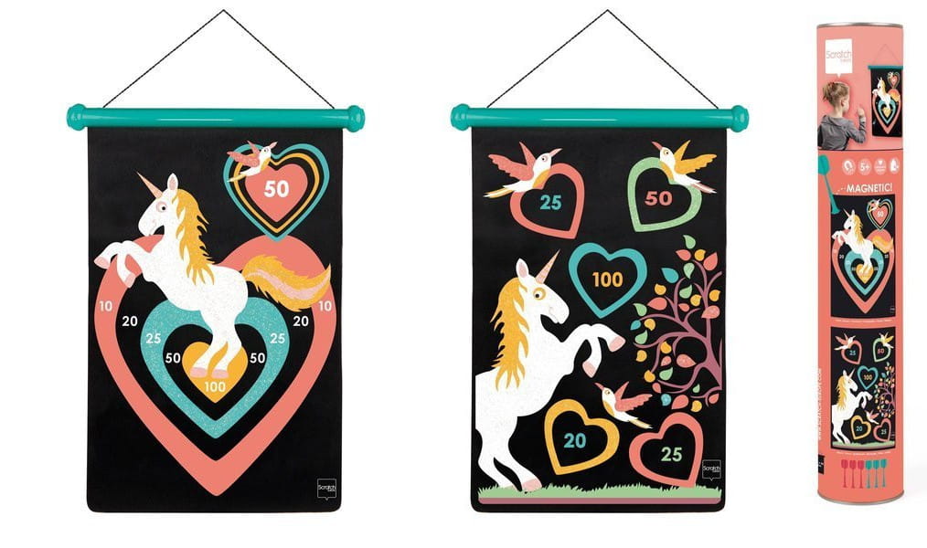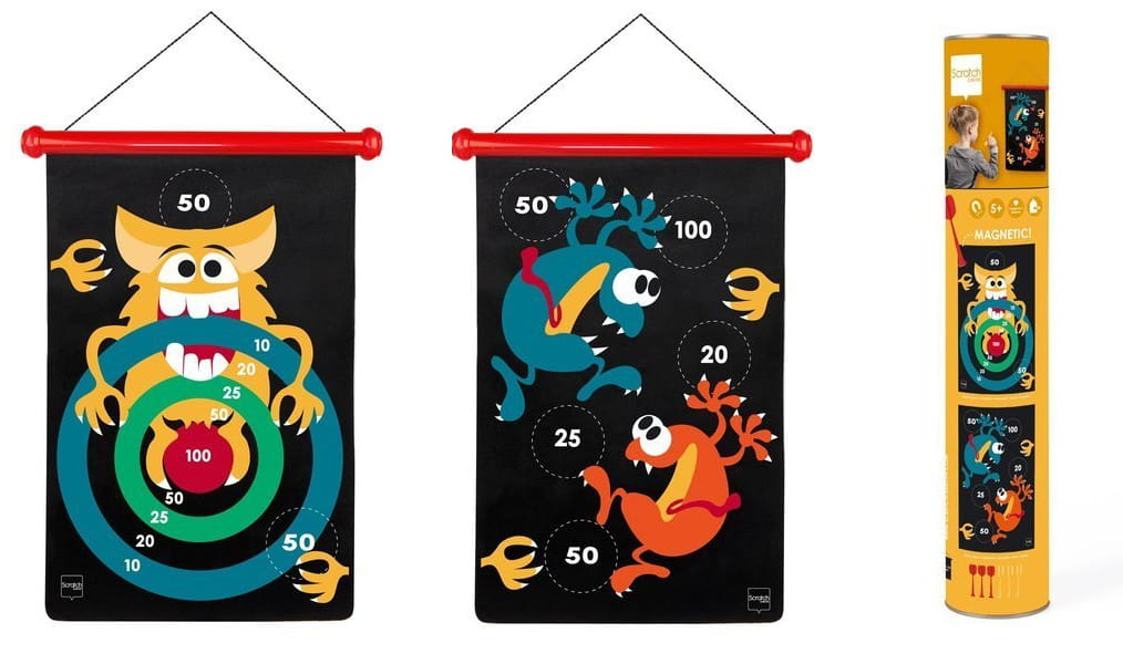 Magnetyczne rzutki z dwustronną tarczą od Scratch. Rzucanie do celu to wspaniała zabawa.