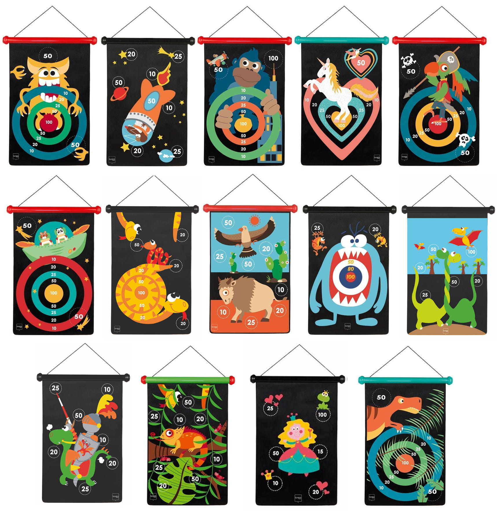 Wśród tylu wzorów każdy z pewnością znajdzie coś, co przykuje jego uwagę. Grafiki są interesujące zarówno dla chłopców, jak i dla dziewczynek, ale i dorośli będą się wspaniale bawić ze swoimi pociechami, celując w wytrzymałą tarczę wygodnymi rzutkami.