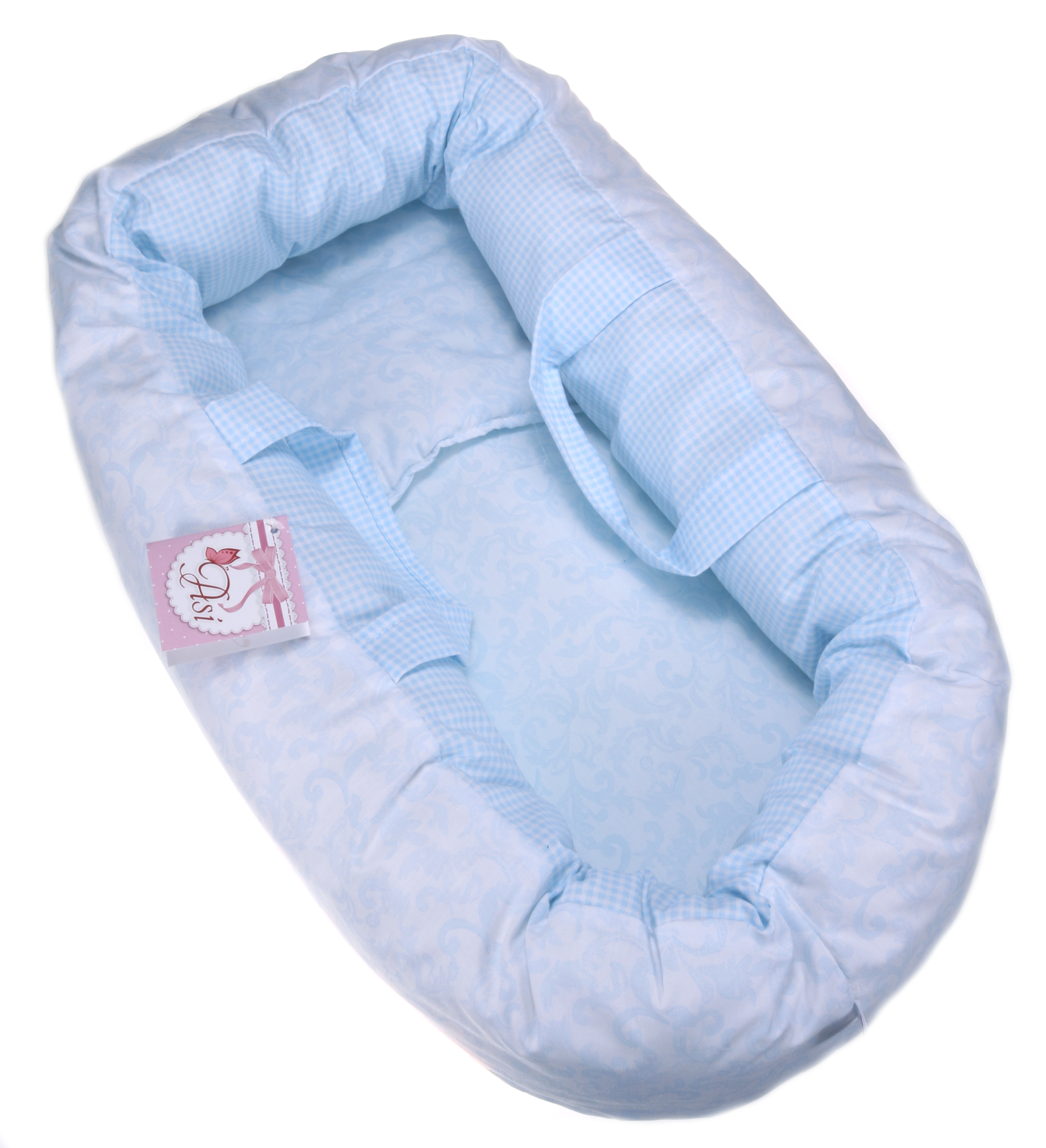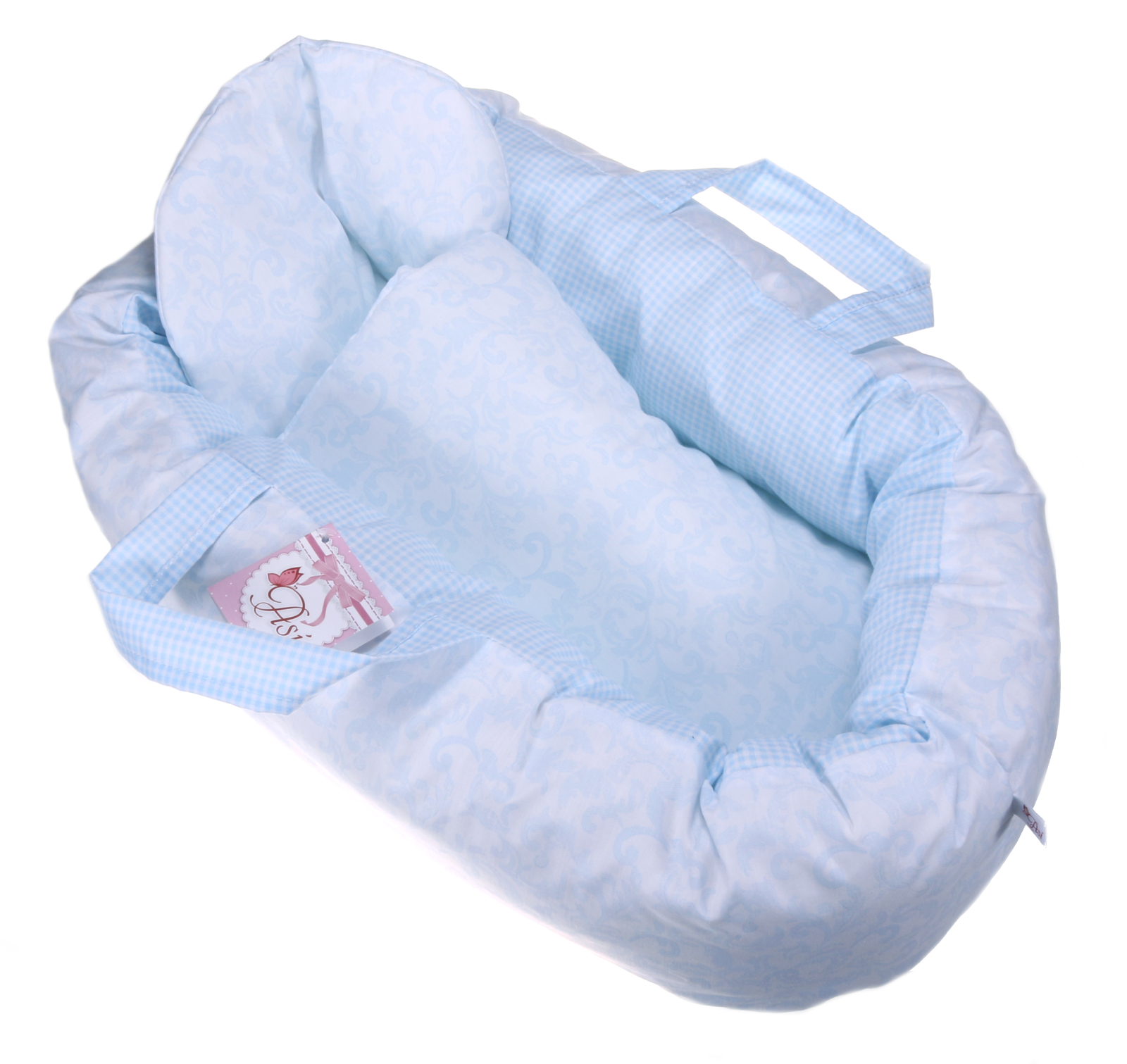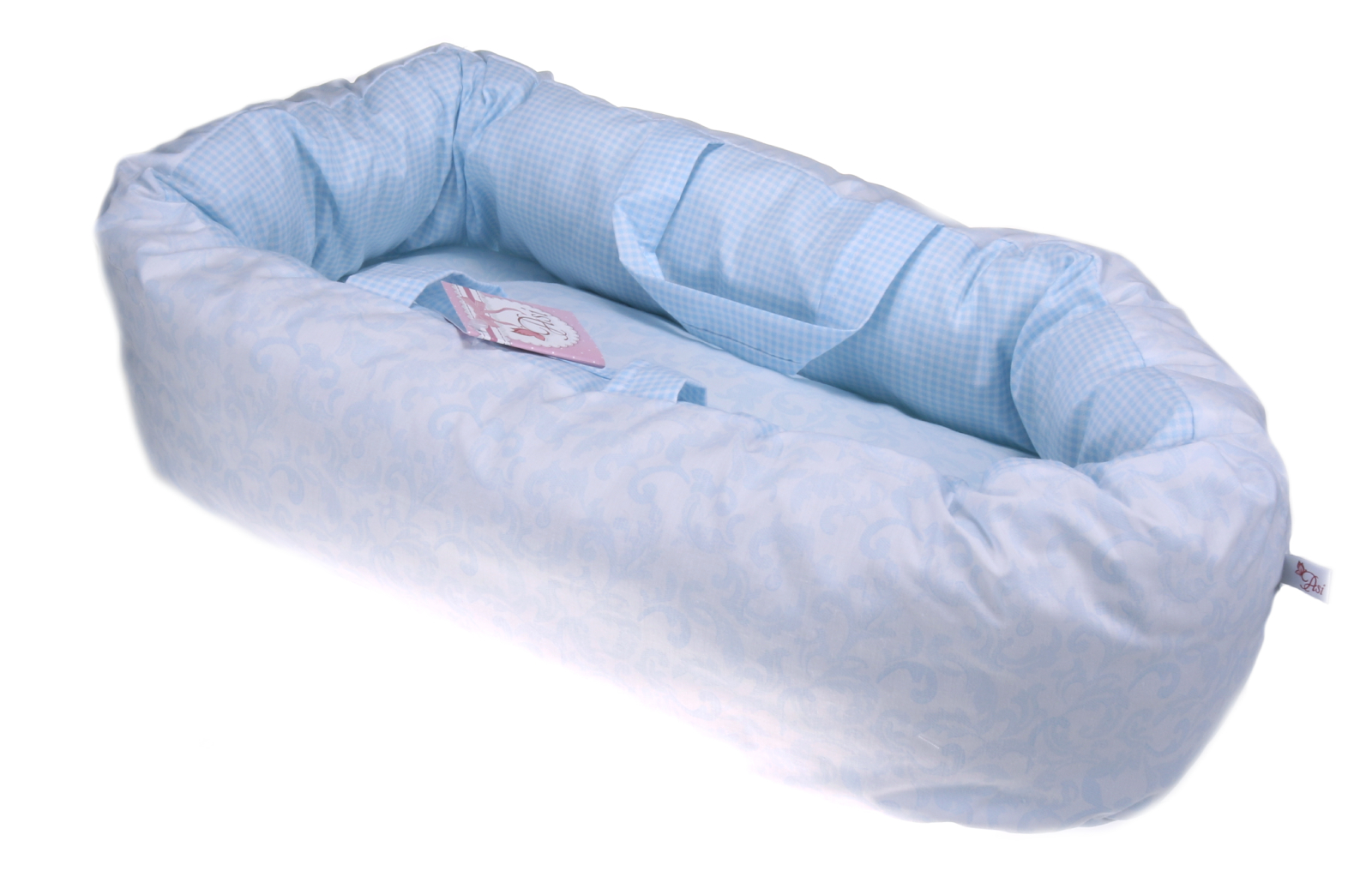 Dziecko może kołysać w nim swoją lalę, wykorzystać do przenoszenia jako wózek na spacerze lub łóżeczko do spania. Nosidełko ozdobione w błękitne kwiatki ma dwie rączki do noszenia i jest uszyte z miłego materiału w przyjemnych, pastelowych kolorach. Tak ozdobione znakomicie uzupełni kolekcję akcesoriów dla ulubionej laleczki.