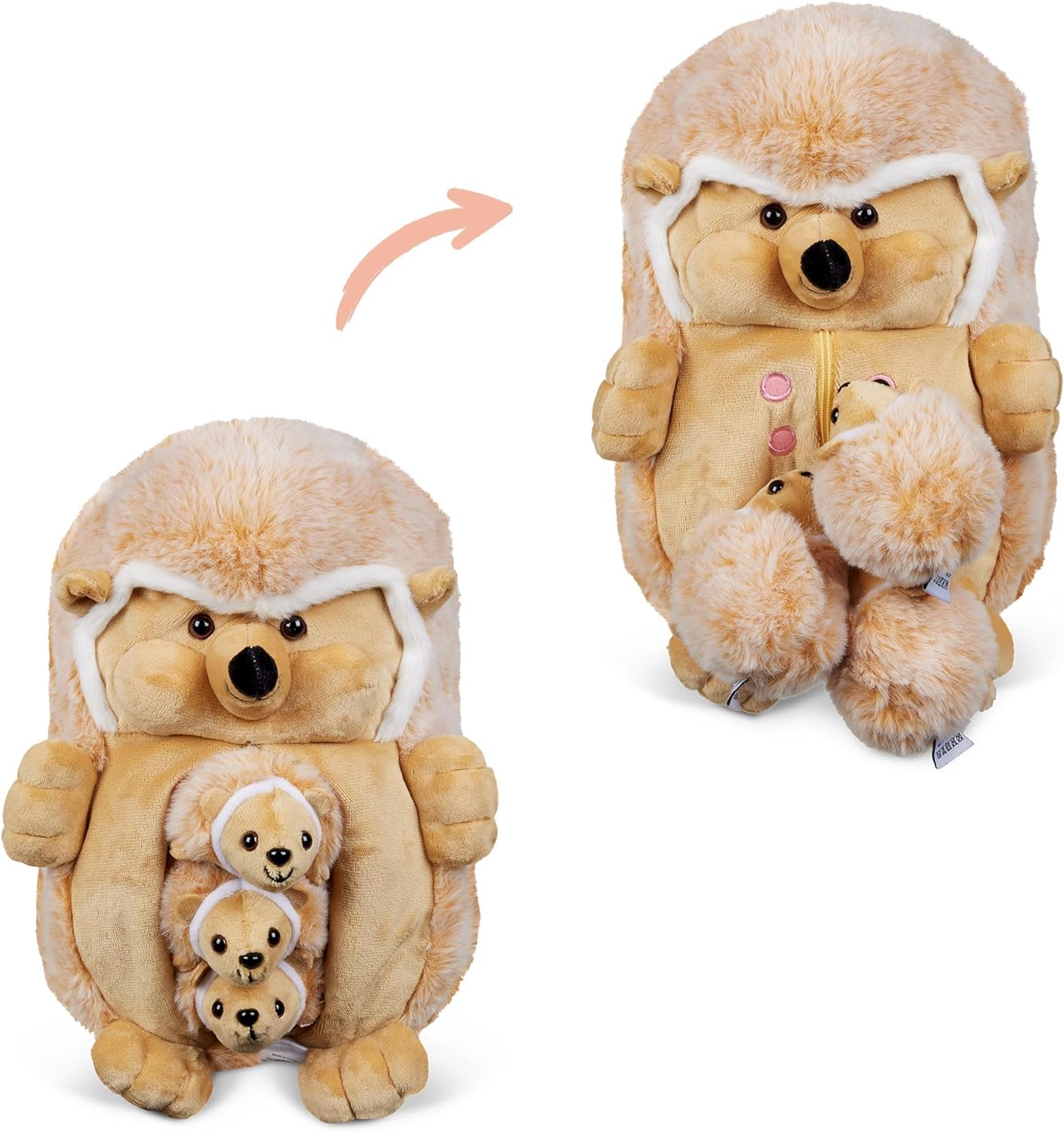 - Praktyczny zamek błyskawiczny, który pozwala przechowywać małe zwierzątka w brzuszku mamy