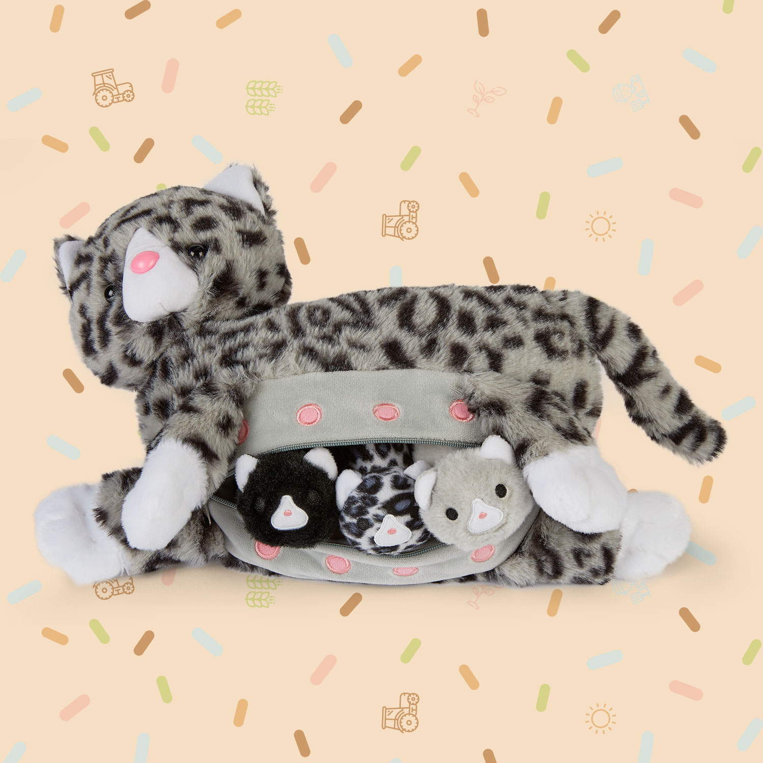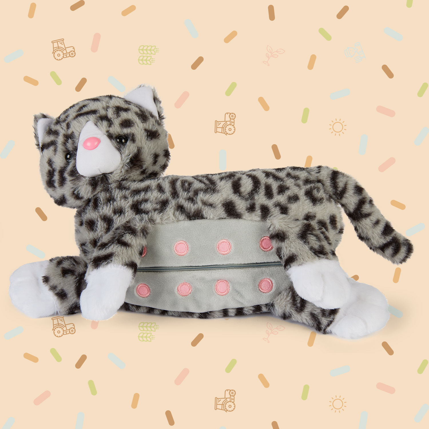 - Praktyczny zamek błyskawiczny, który pozwala przechowywać małe zwierzątka w brzuszku mamy