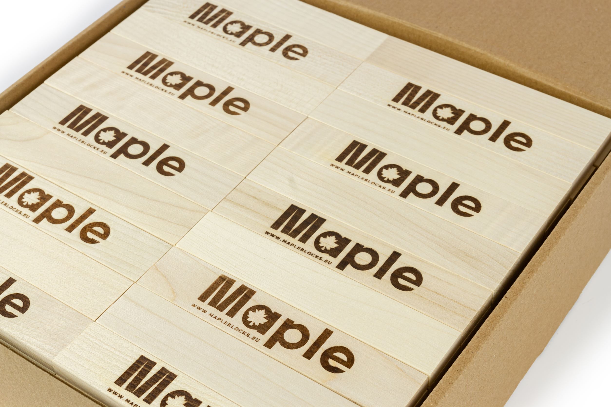 Część klocków posiada wypalone unikalne logo Maple®.