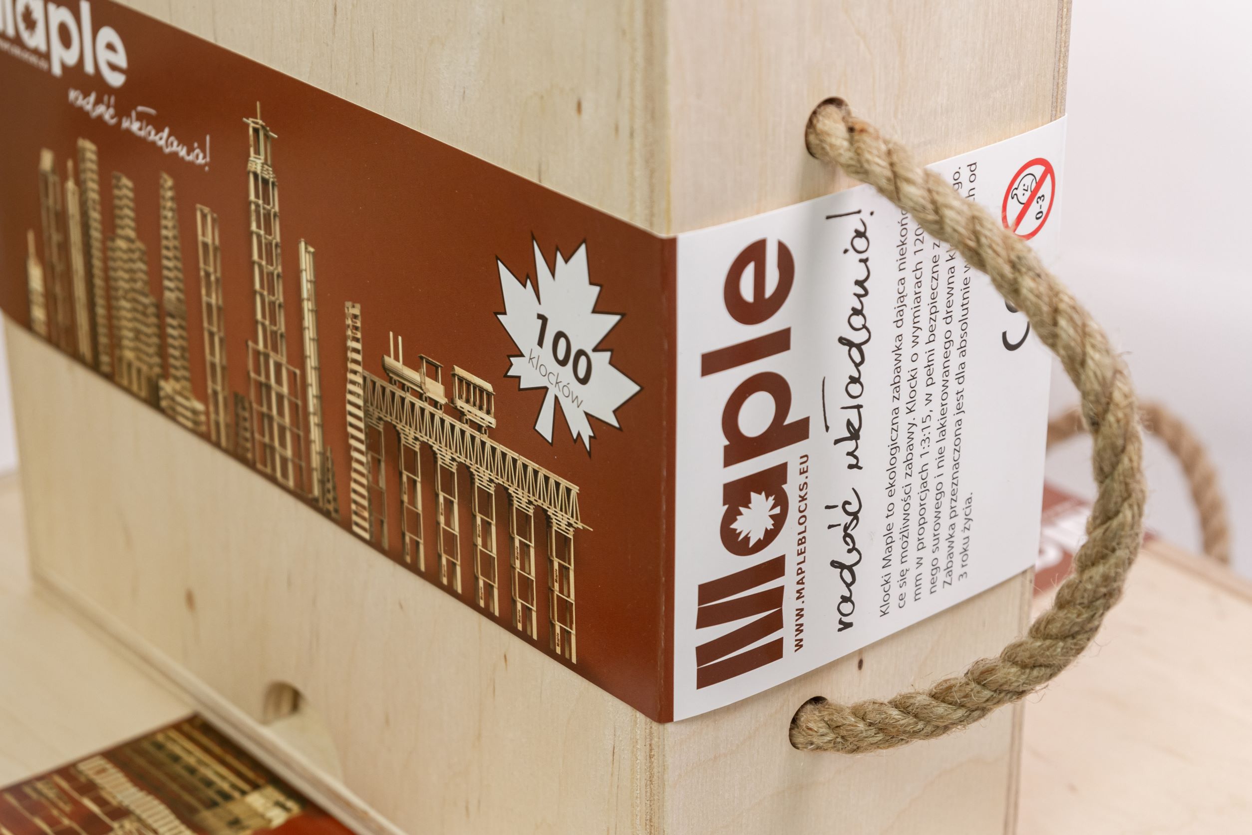 Klocki wykonane są z naturalnego, trwałego, lekkiego i wytrzymałego Klonu.