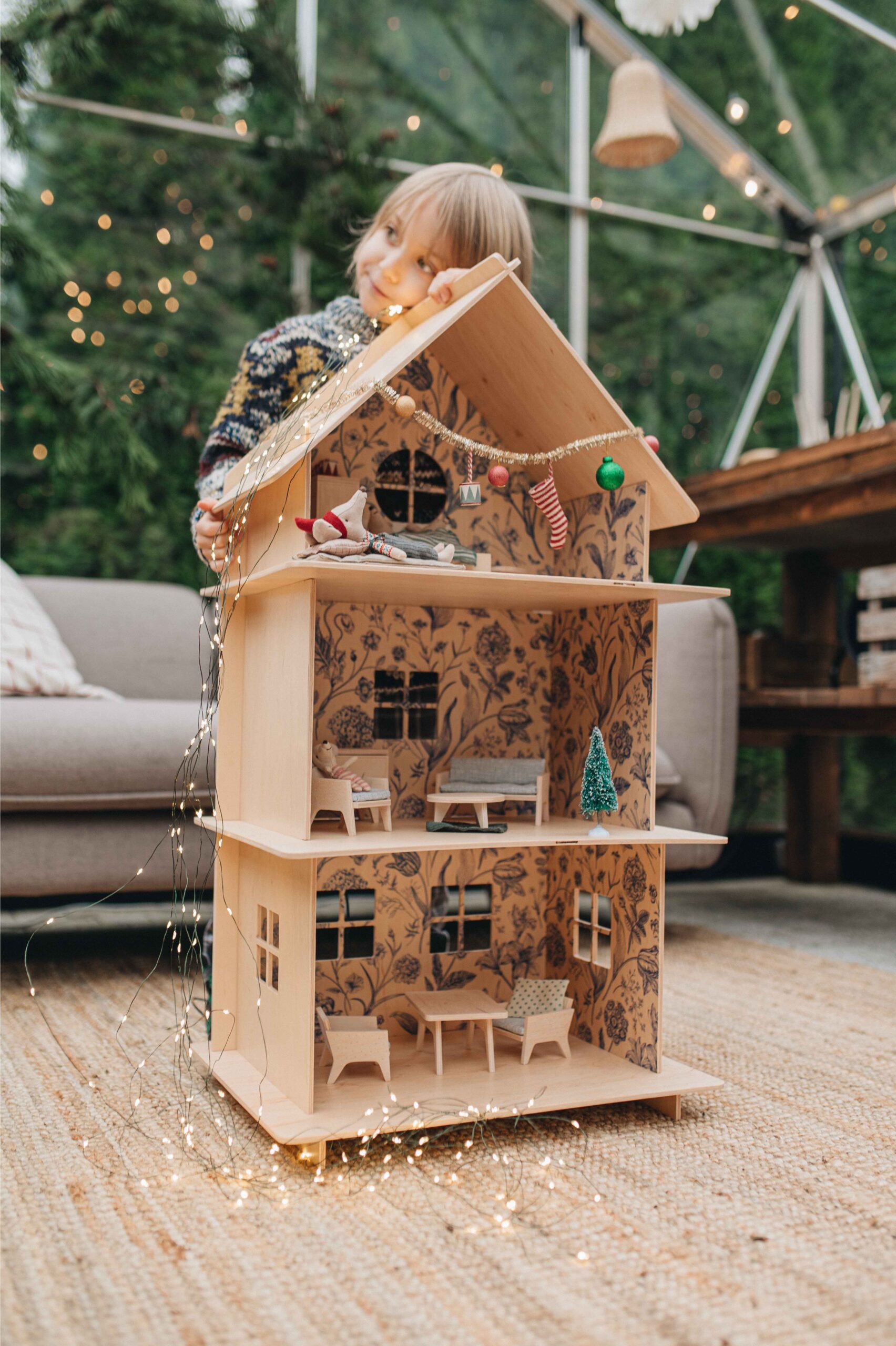 Mebelki naturalne do drewnianego domku dla lalek Milin, o pięknym ponadczasowym designie. Pasują do każdego wnętrza, zarówno loftowego jak i boho.