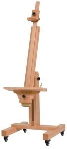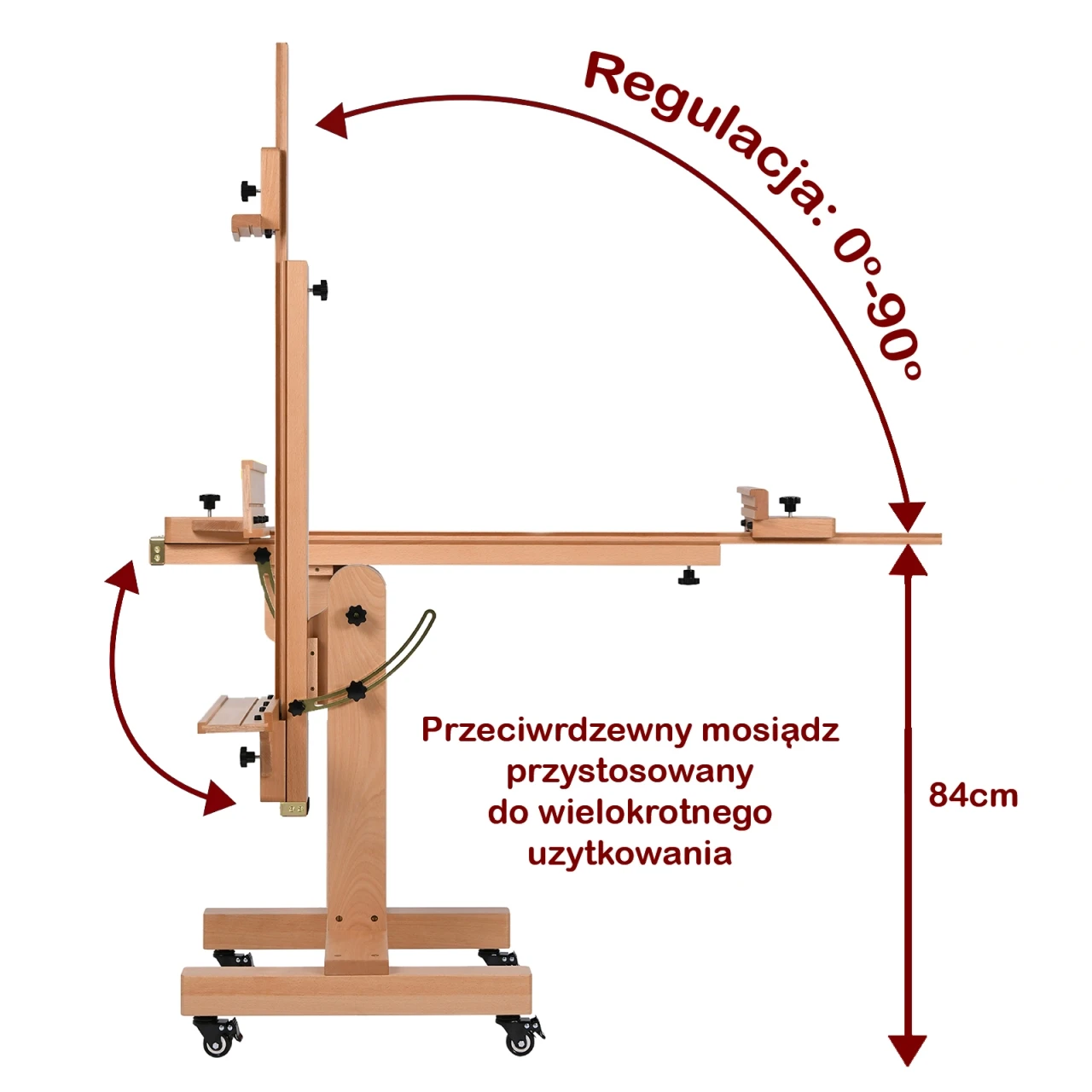 Sztaluga studyjna regulowana z drewna bukowego Meeden Deluxe ArtistStudio Easel na kółkach, by łatwo przestawiać ją z miejsca na miejsce maksymalna wysokość płótna: 180 cm.