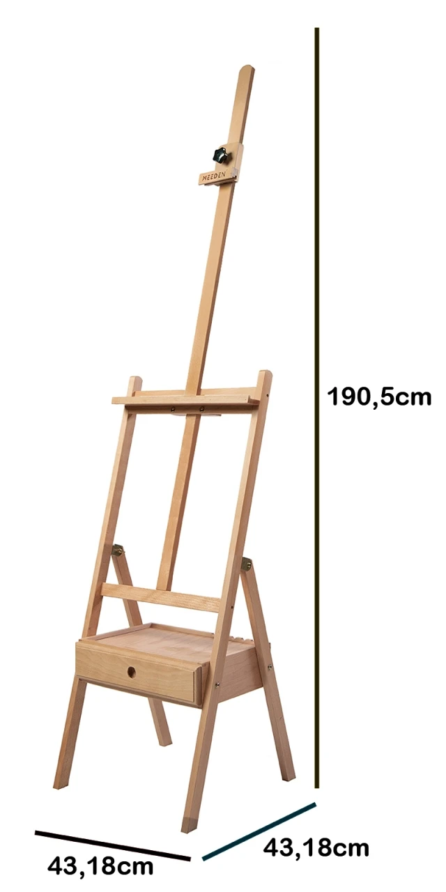 Sztaluga studyjna z szufladą regulowana z drewna bukowego Meeden maksymalna wysokość płótna: 190,5 cm.